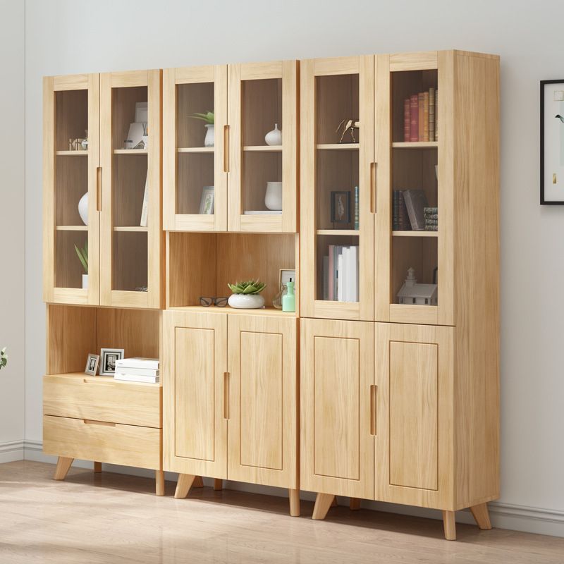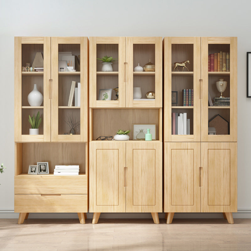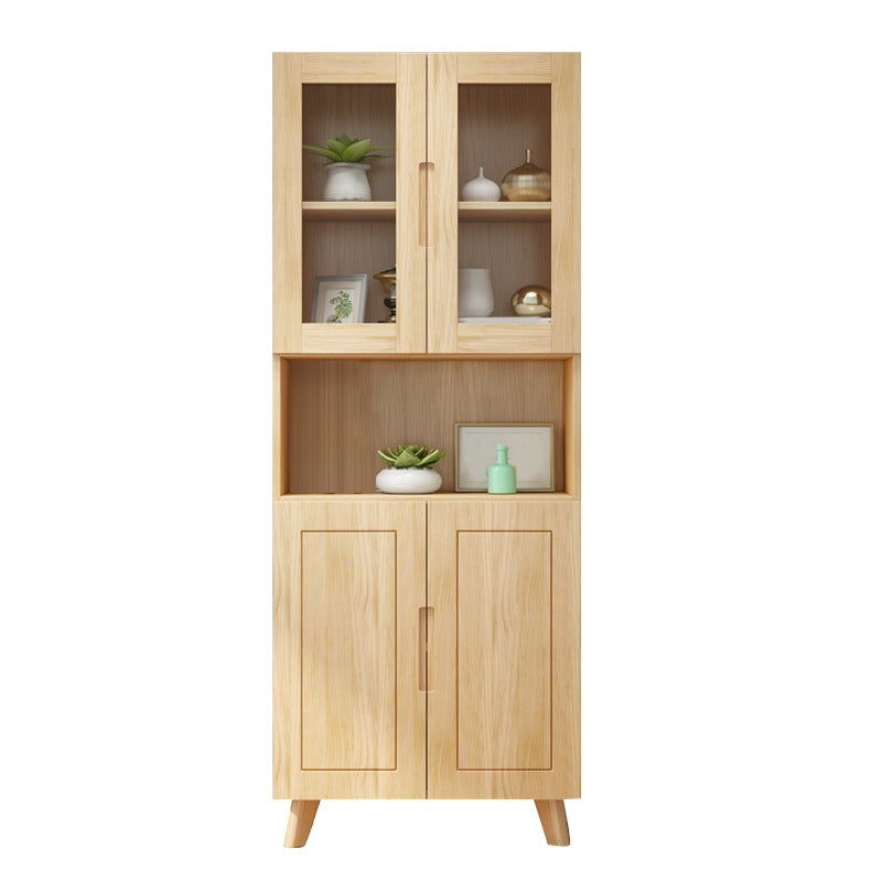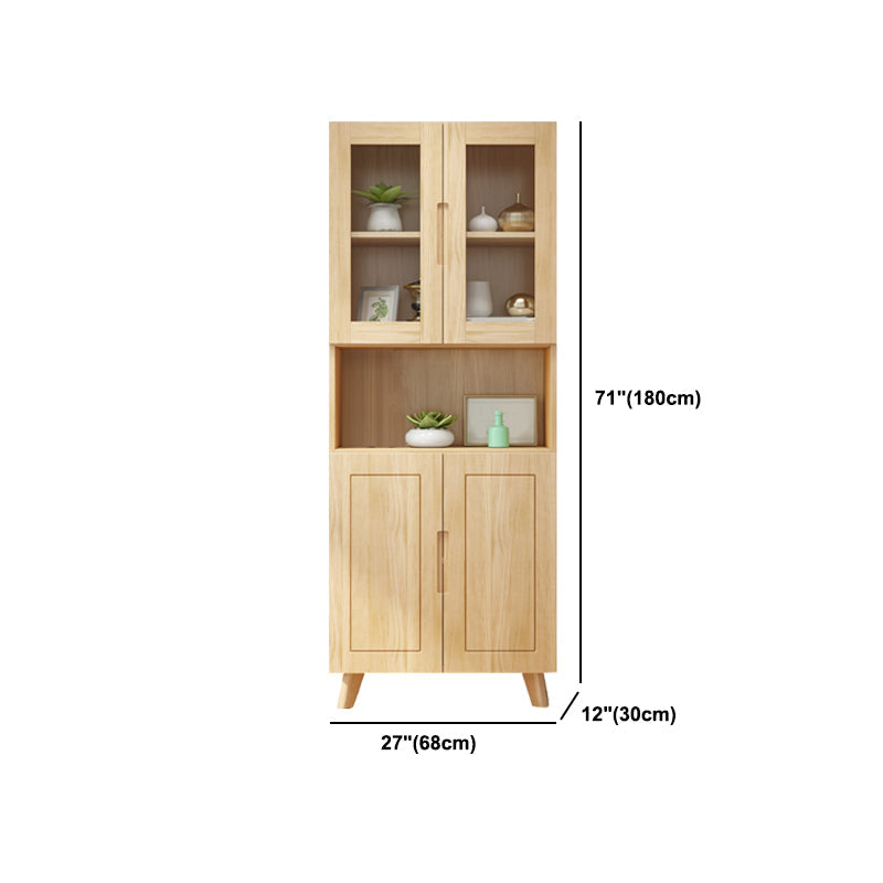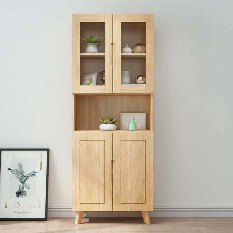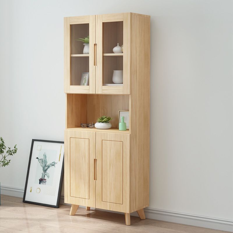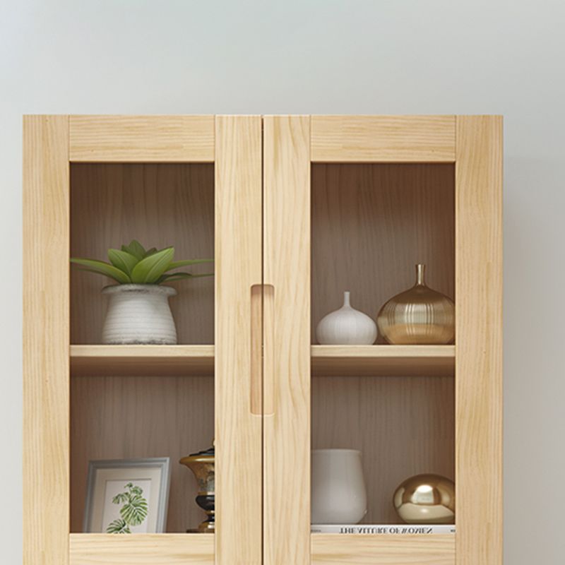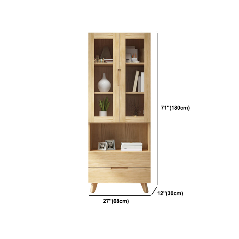 ソリッドウッドトールストレージキャビネットガラスドアディスプレイリビングルーム用