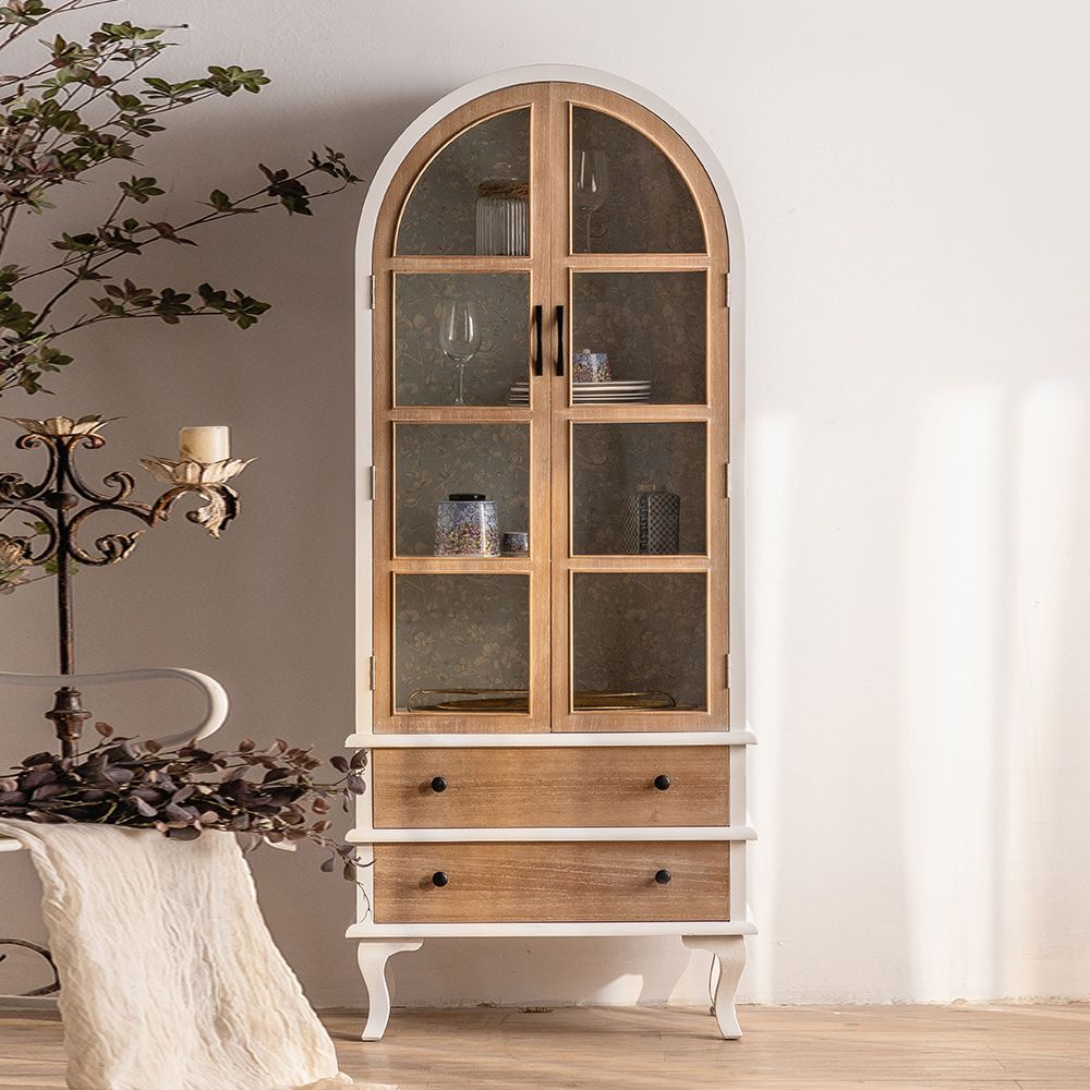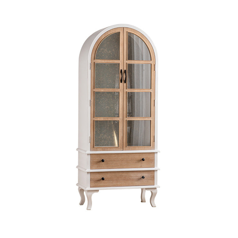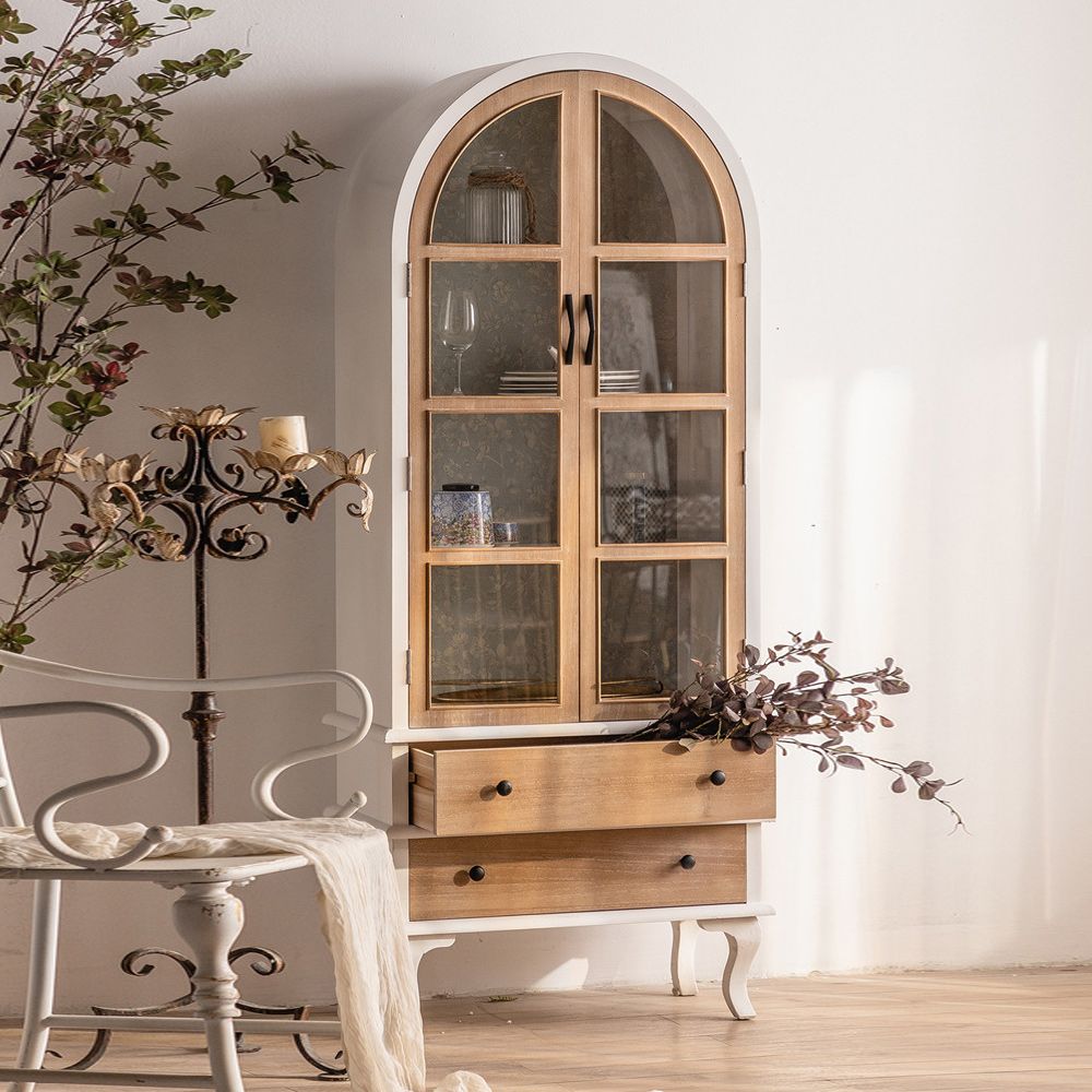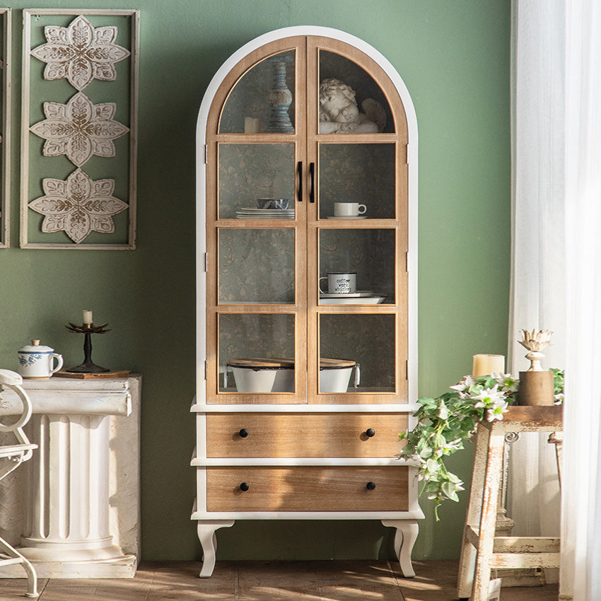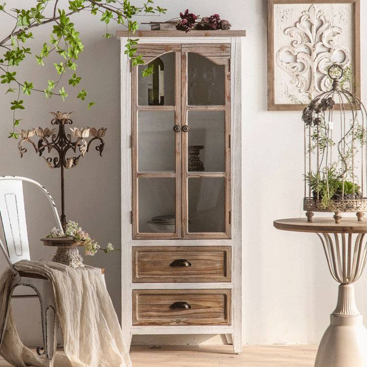 伝統的な松のディスプレイスタンドガラスドアリビングルーム用の収納キャビネット