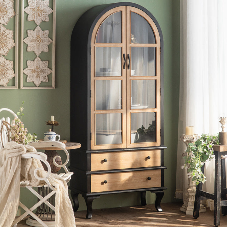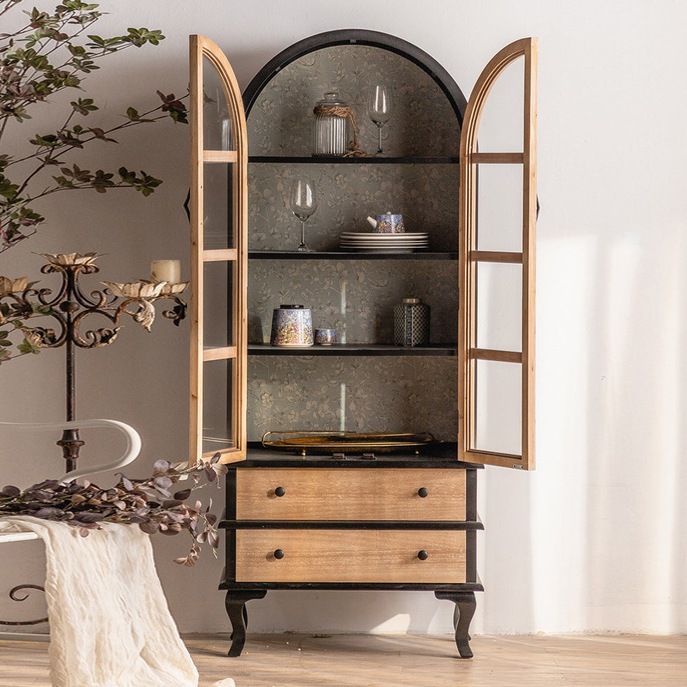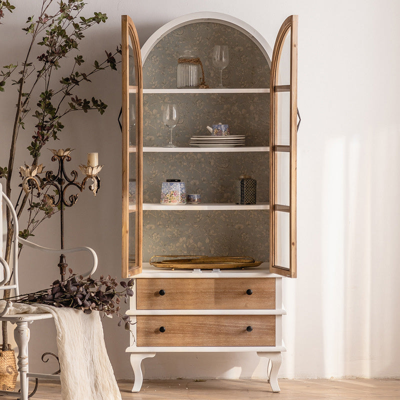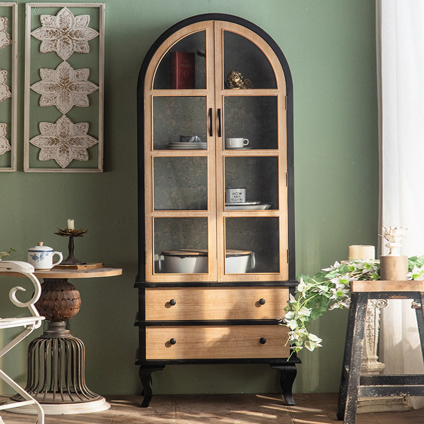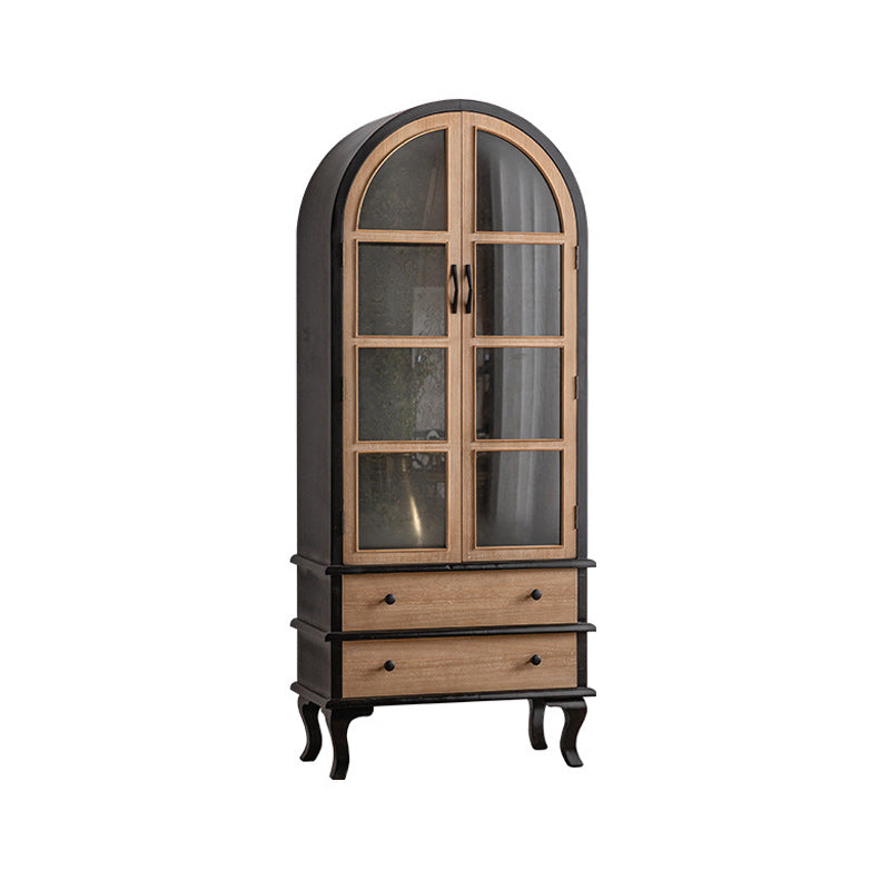伝統的な松のディスプレイスタンドガラスドアリビングルーム用の収納キャビネット