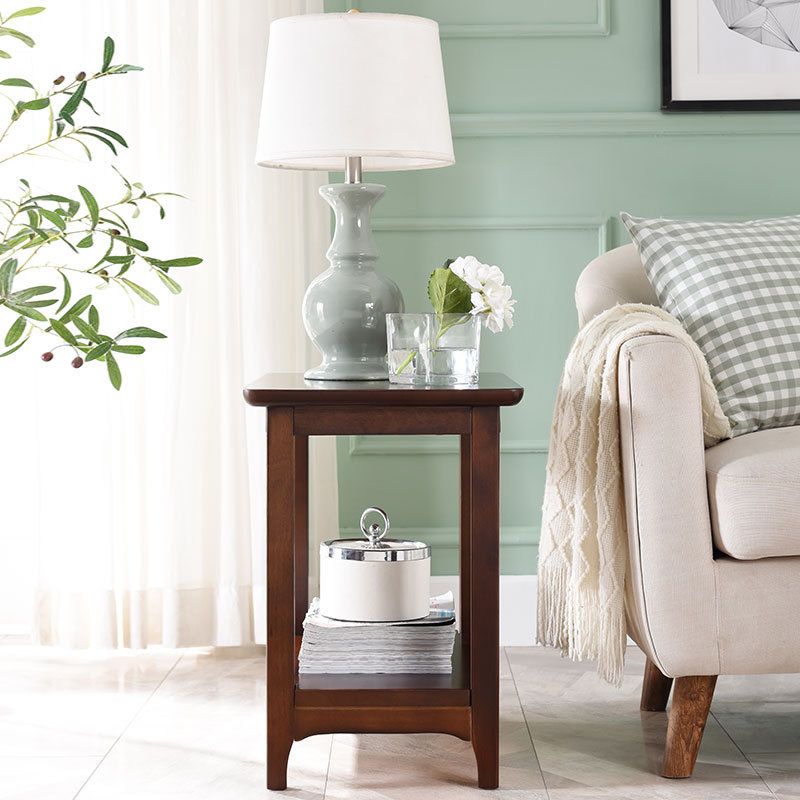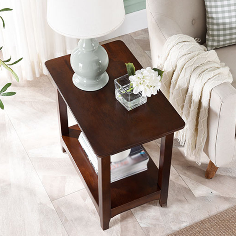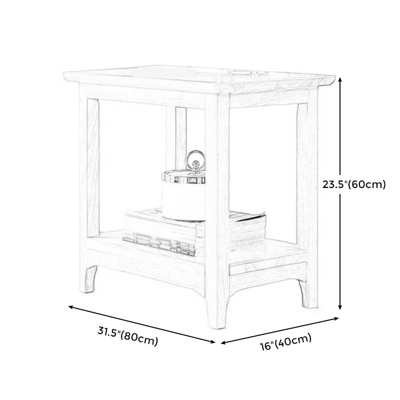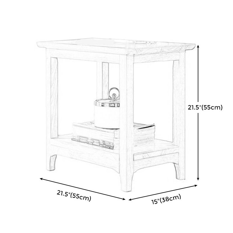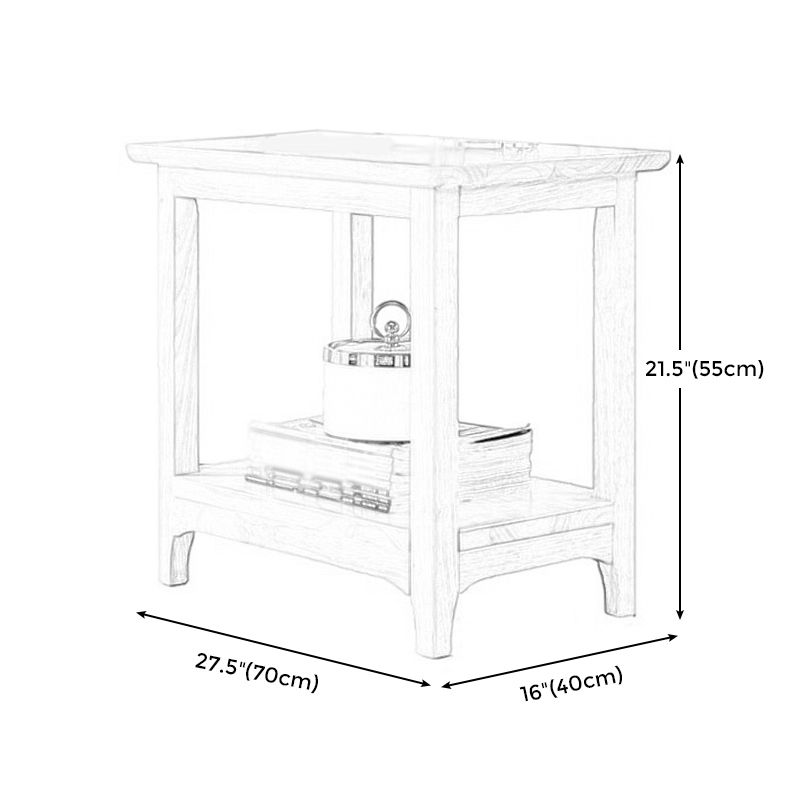 トランジショナルウッドトップサイドテーブルストレージ付き長方形のソファサイドエンドテーブル