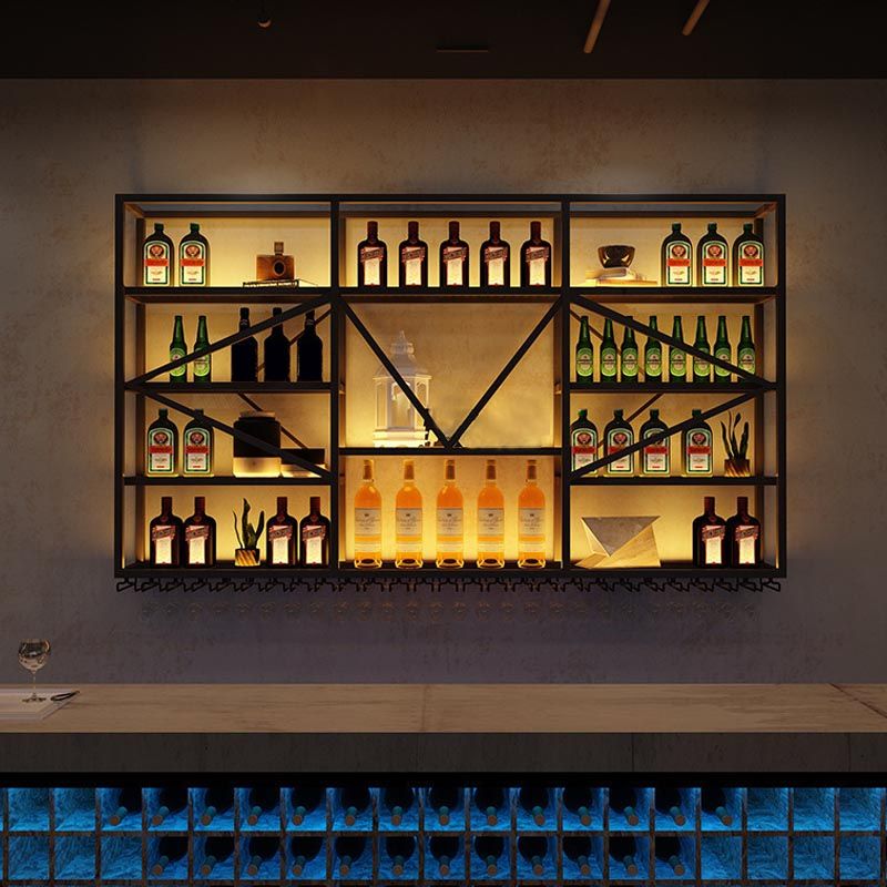 壁掛け鉄ワインラックモダンスタイルのワインホルダーラックブラック