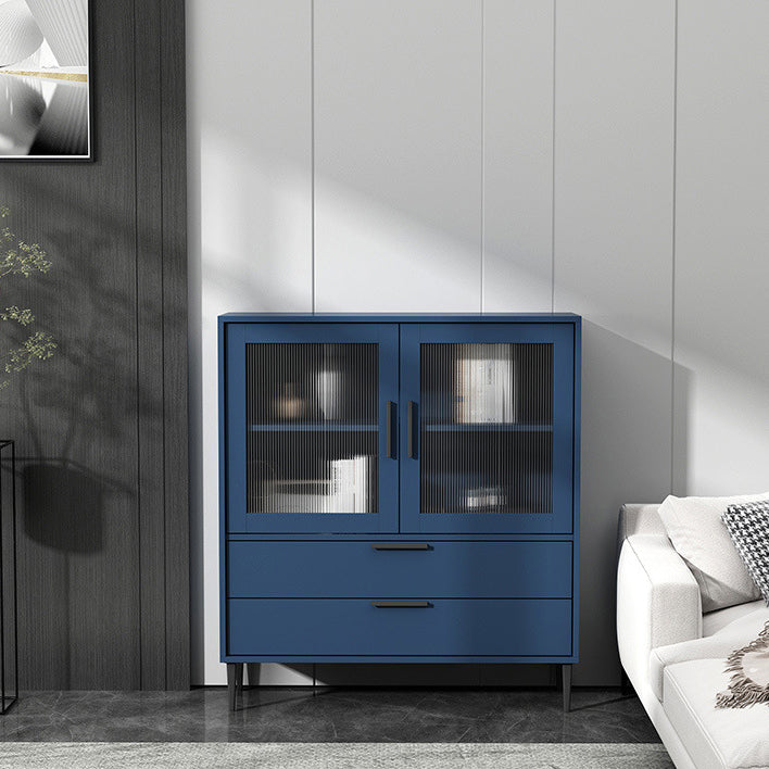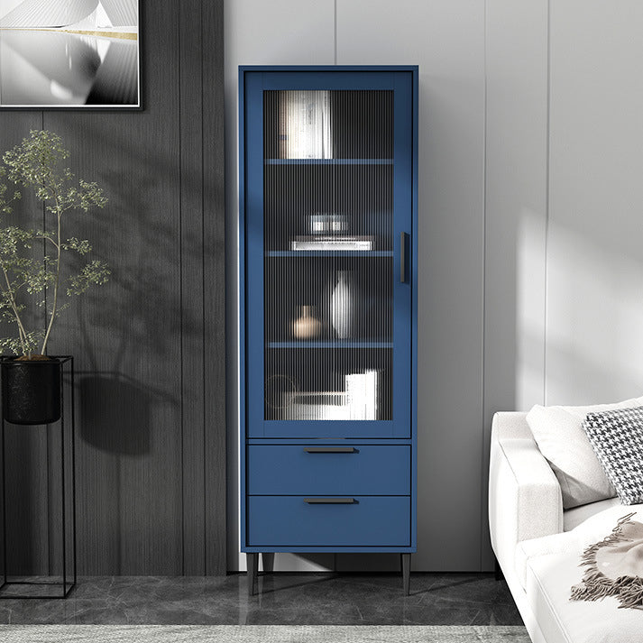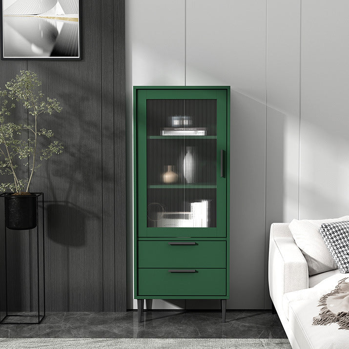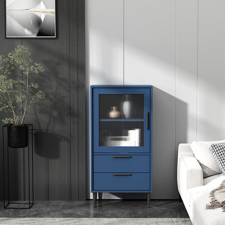 ガラスドアと4本の鋼の黒い脚を備えた木製のアクセントキャビネット