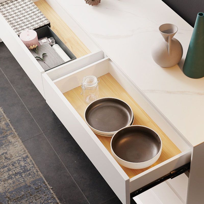 Eigentijdse stenen opbergkast in de borst slaapkamer in het wit met 8 laden