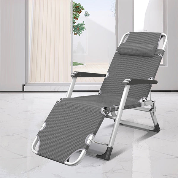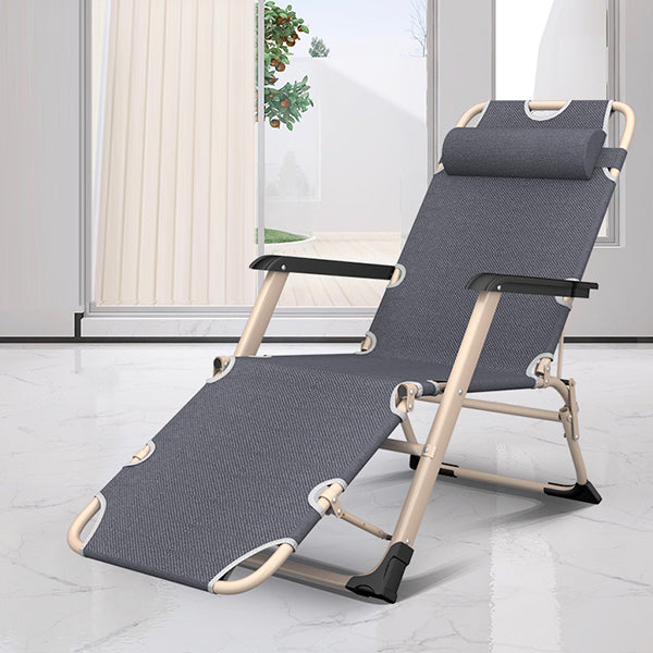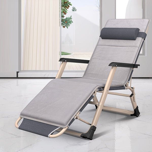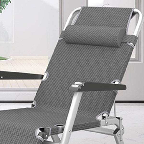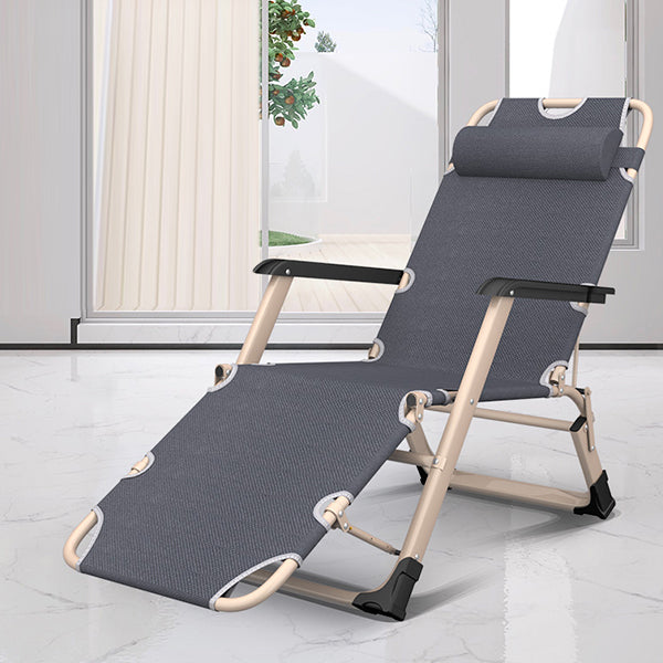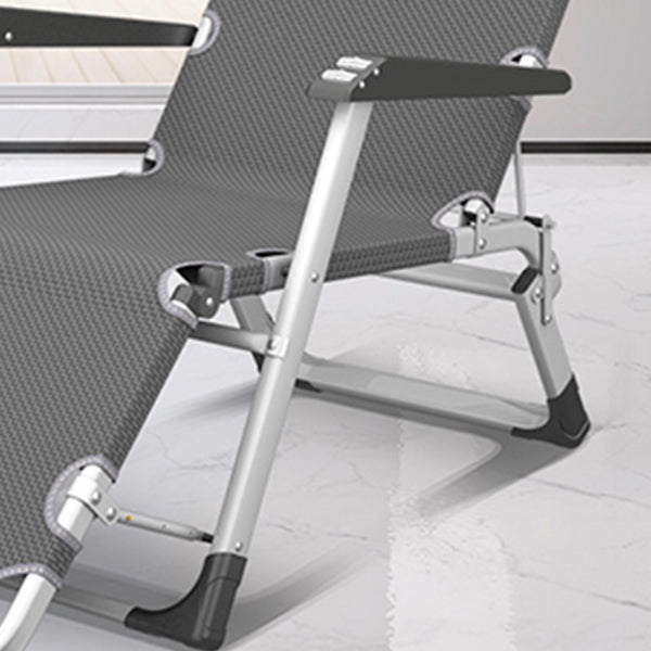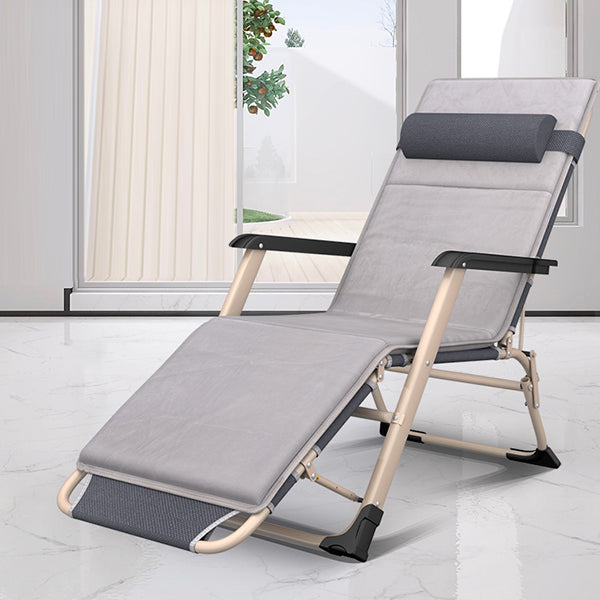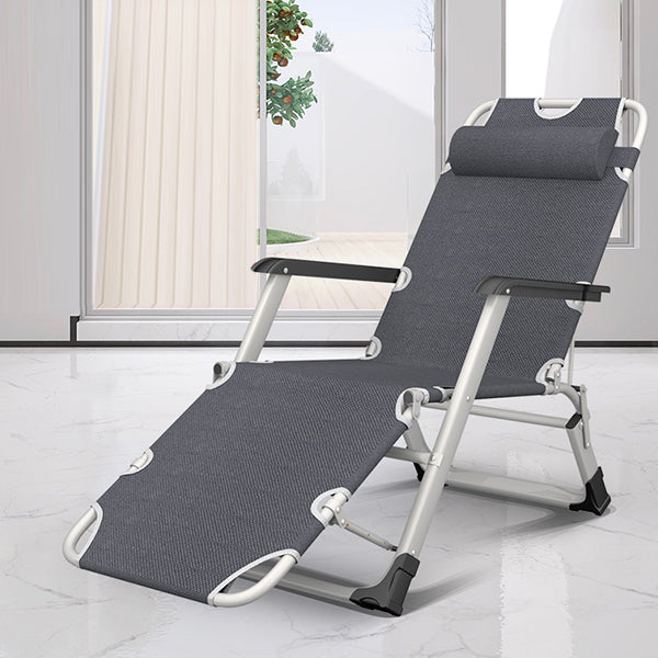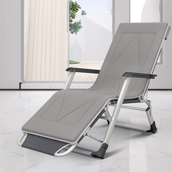 Hedendaagse grijze standaard ligstoel met metalen basis en zwarte armen