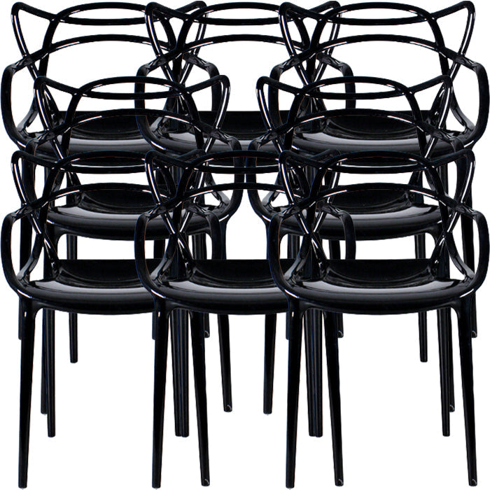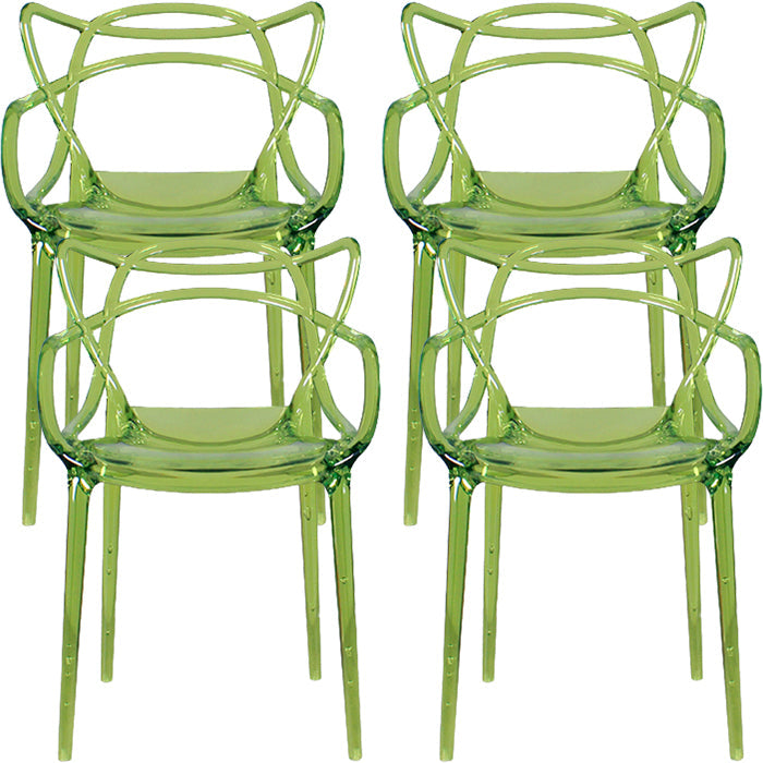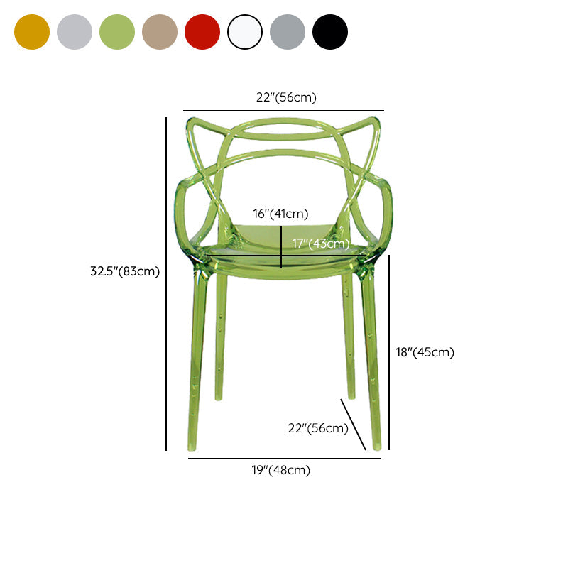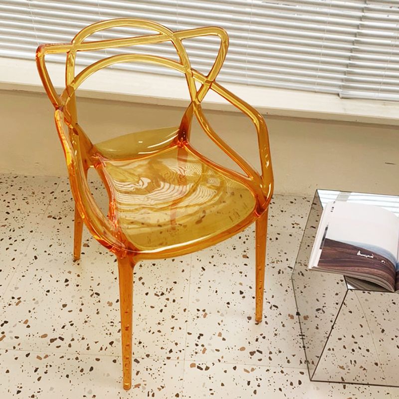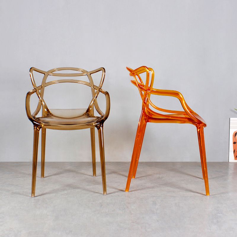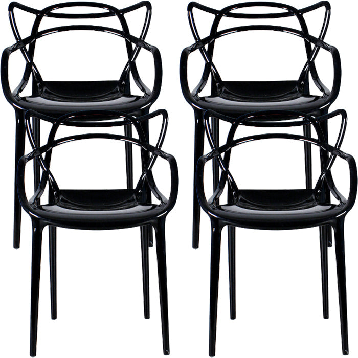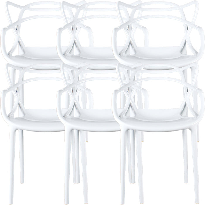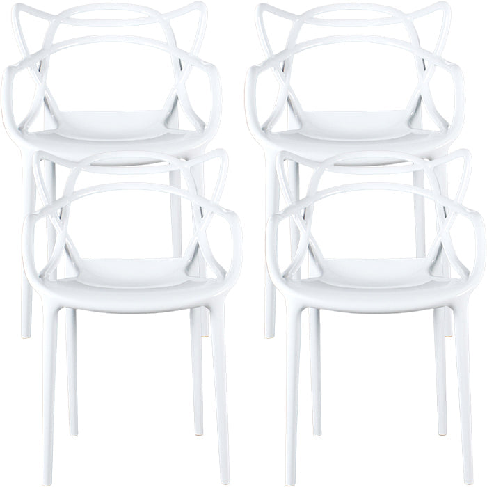 Eigentijdse indoor plastic open achterkant stacking eetstoel stoel