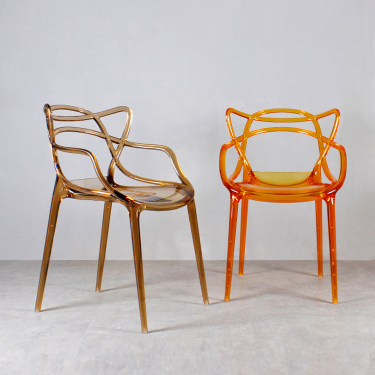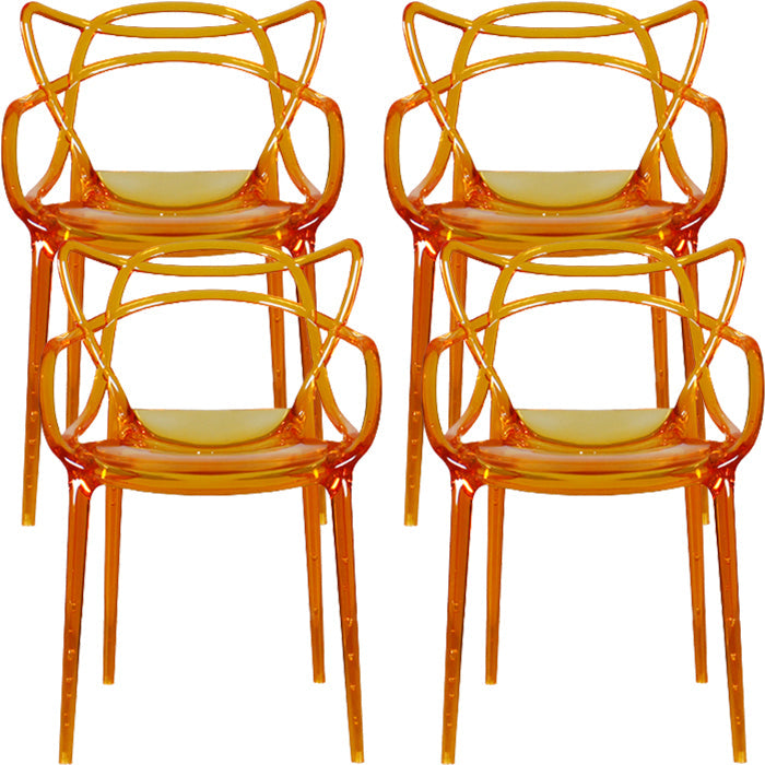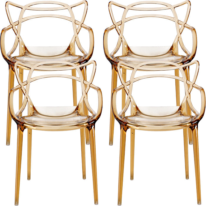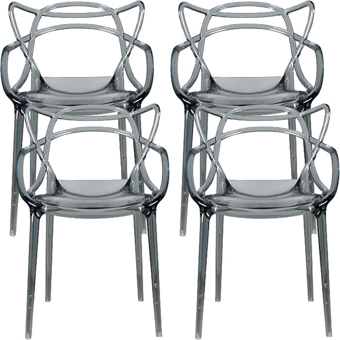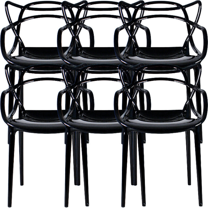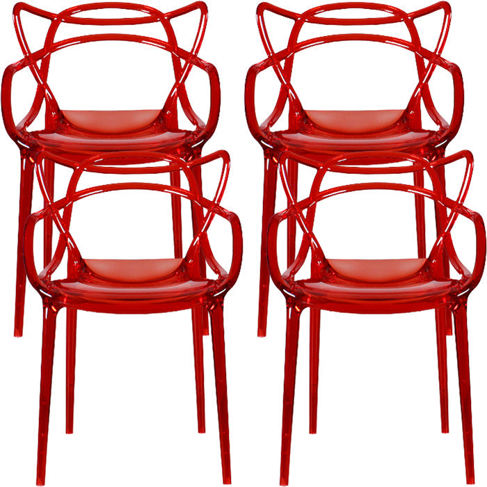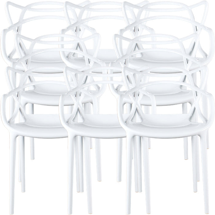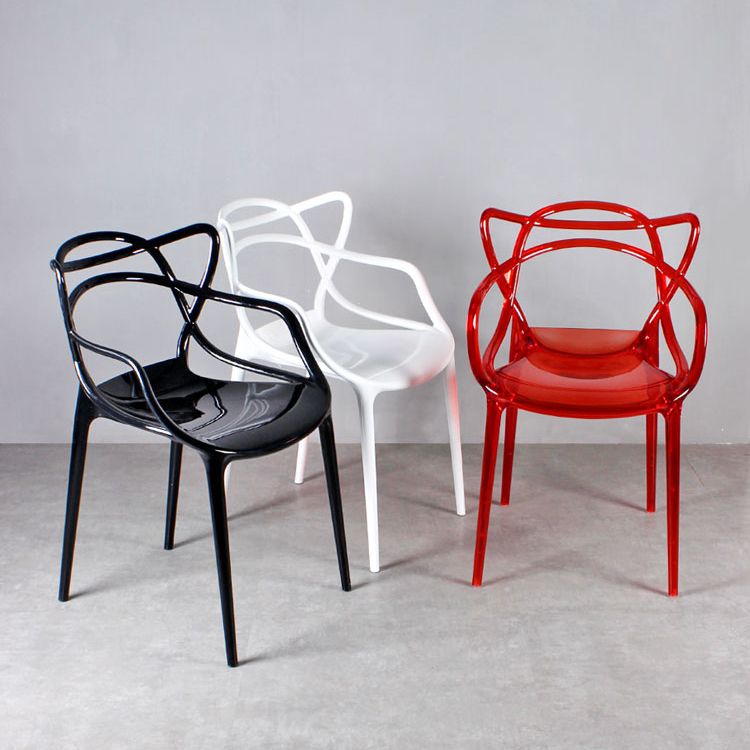Eigentijdse indoor plastic open achterkant stacking eetstoel stoel