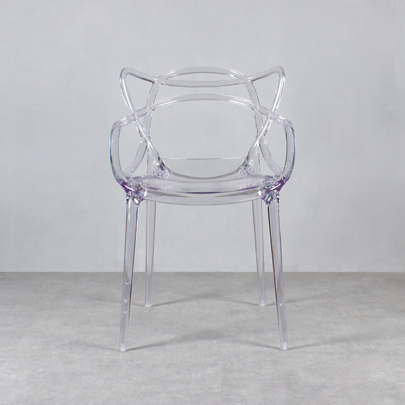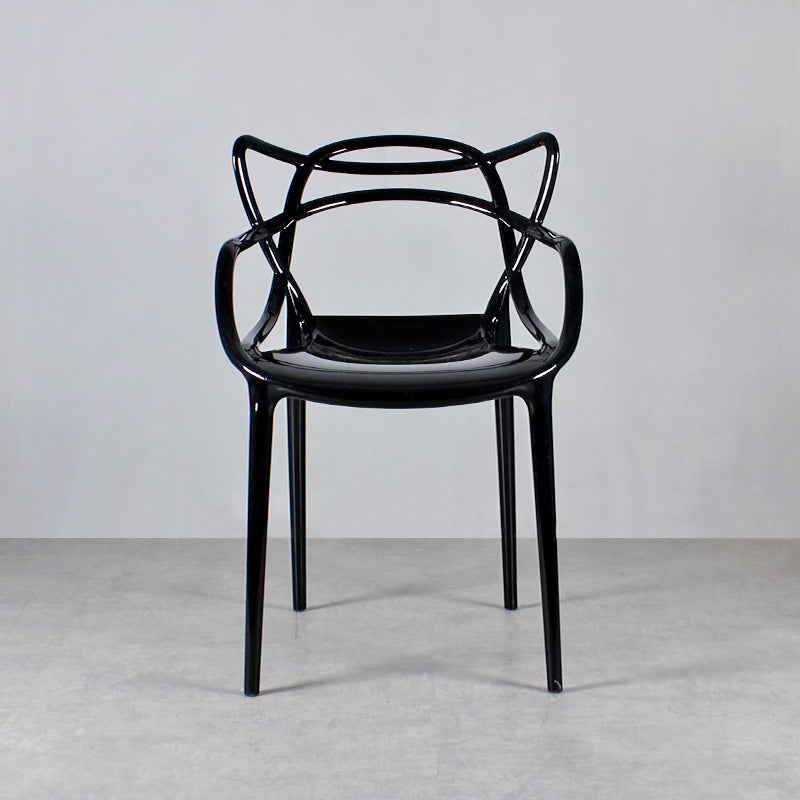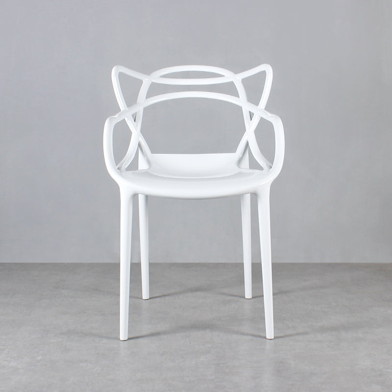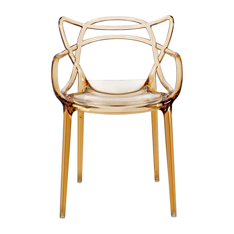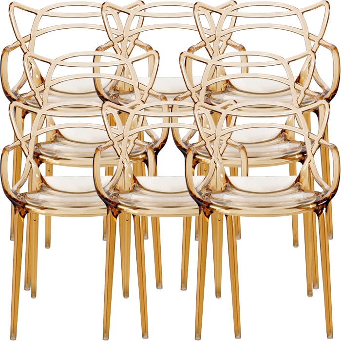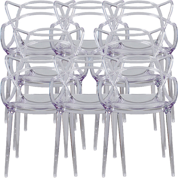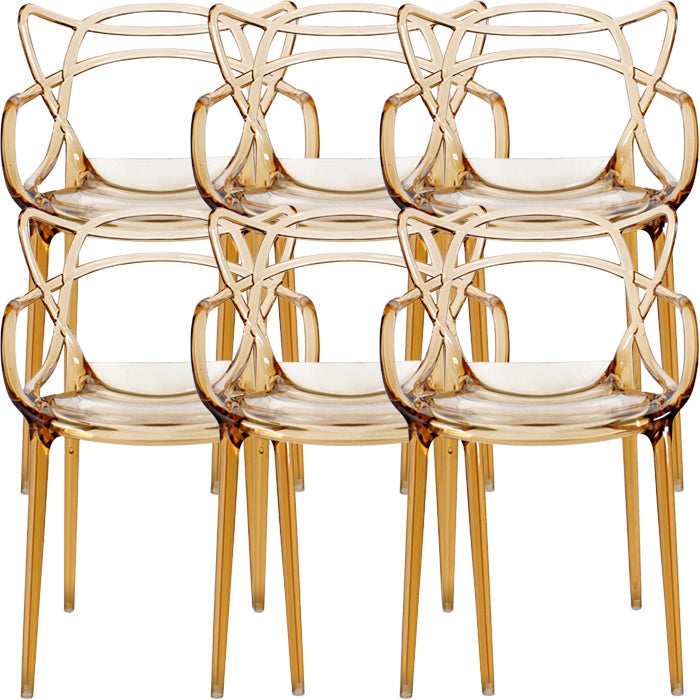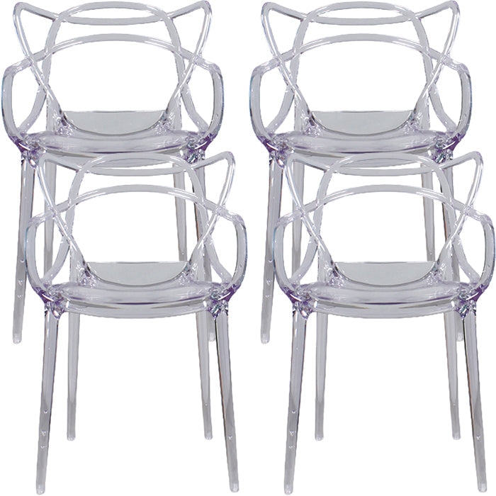 Eigentijdse indoor plastic open achterkant stacking eetstoel stoel