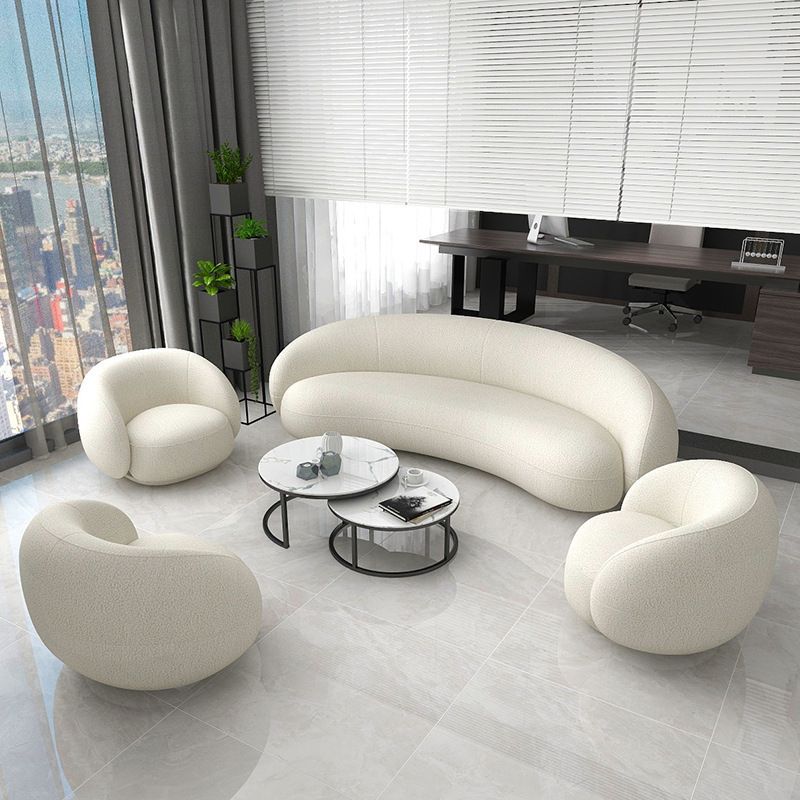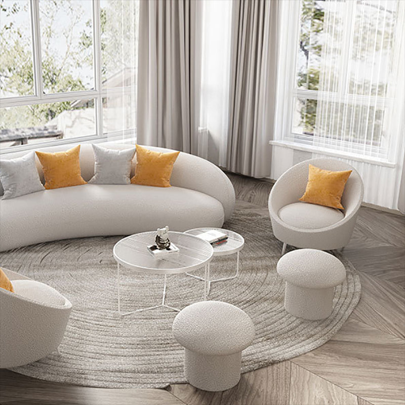 Eigentijdse woonkamer stof smoking armkussens witte zitplaatsen