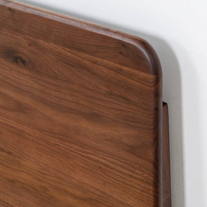 Eigentijds paneelbed in bruin massief houtbed met rechthoekig hoofdeinde