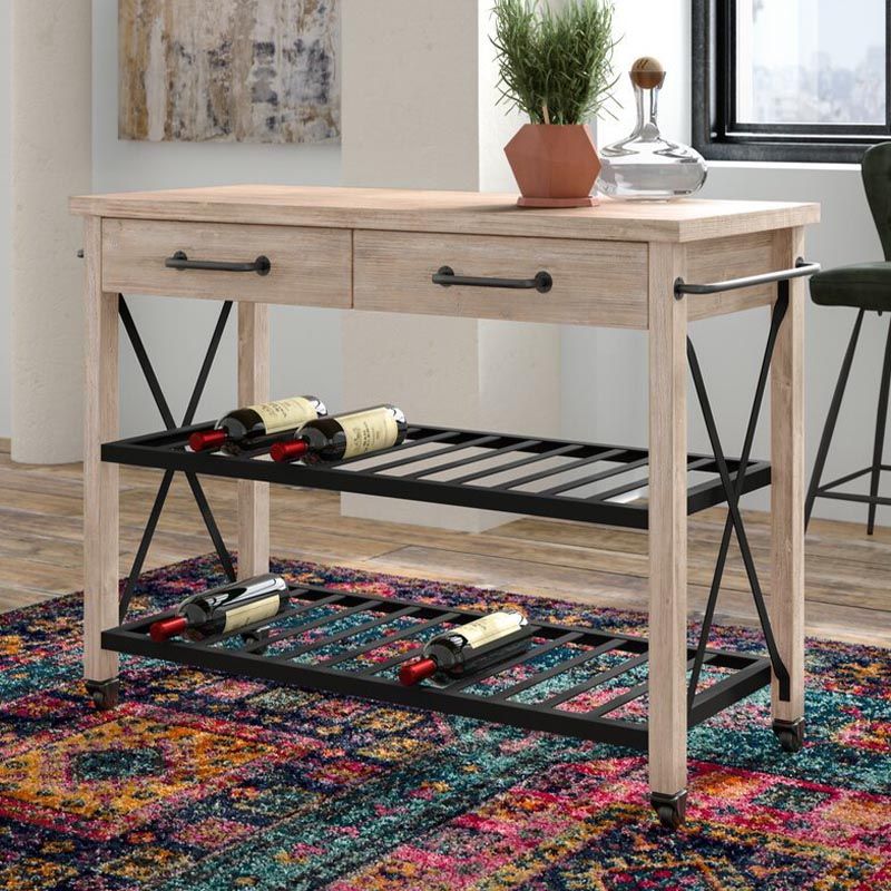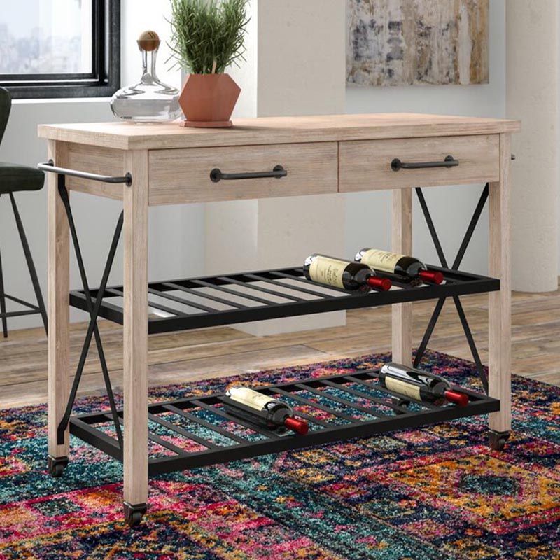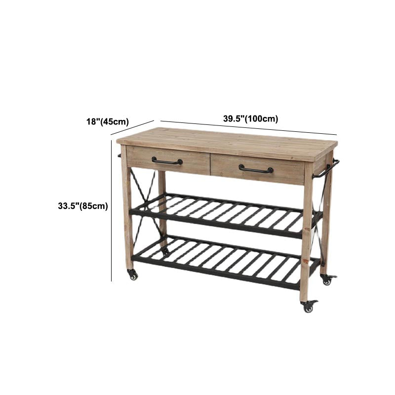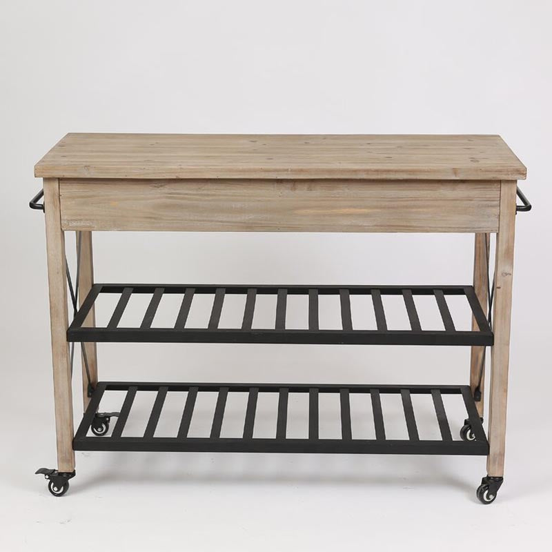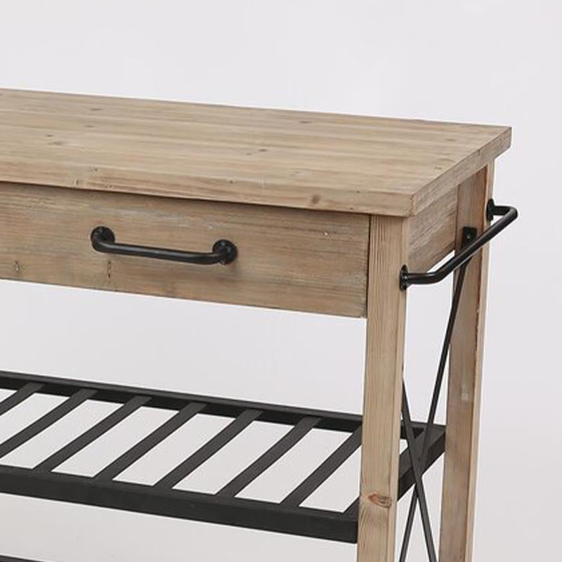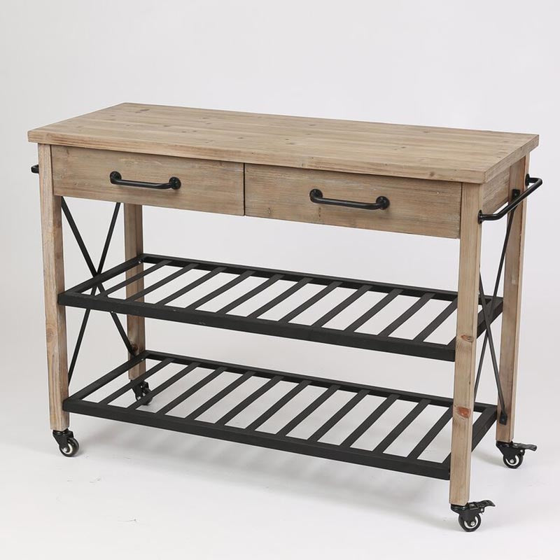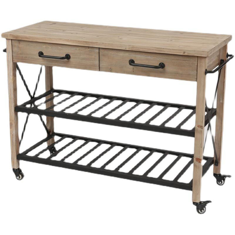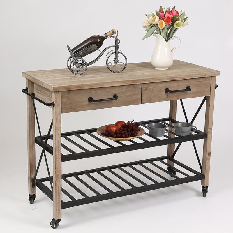 Eigentijdse rollende keukenkar houten rechthoekige keukeneiland kar met handdoekrek