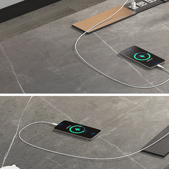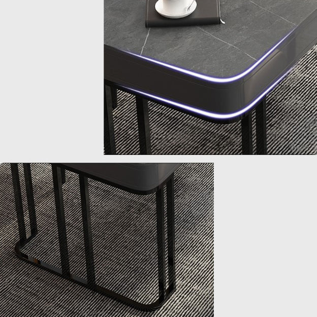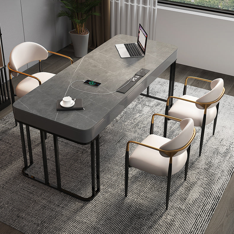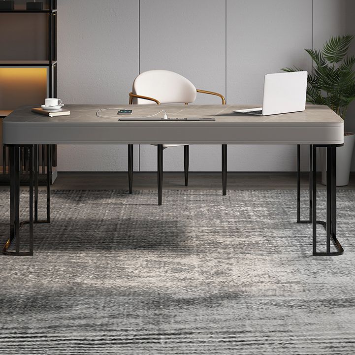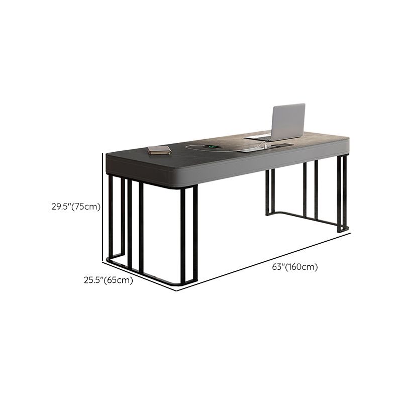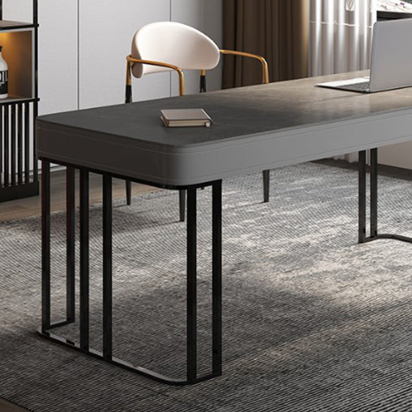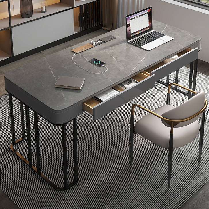 Donkere taupe en zwarte bureausteensteen en roestvrijstalen schrijfbureau met 2 laden