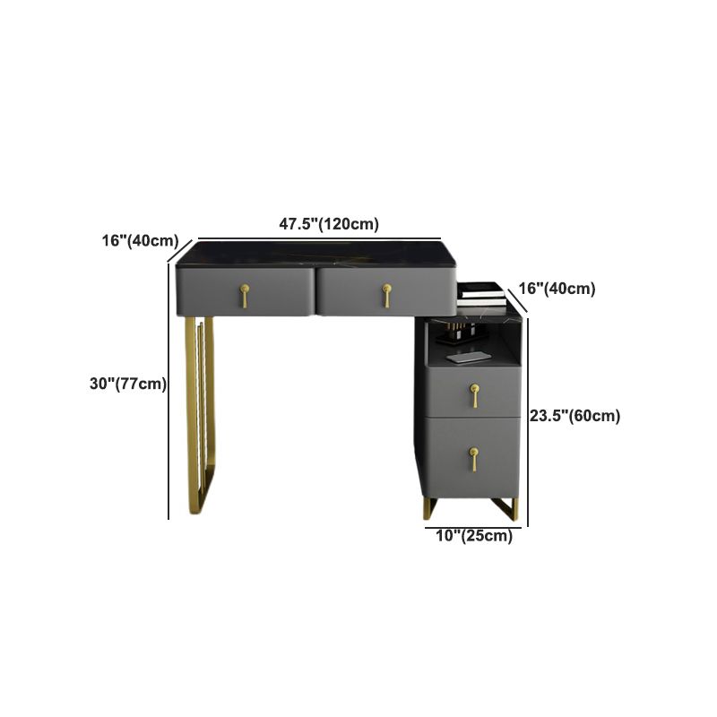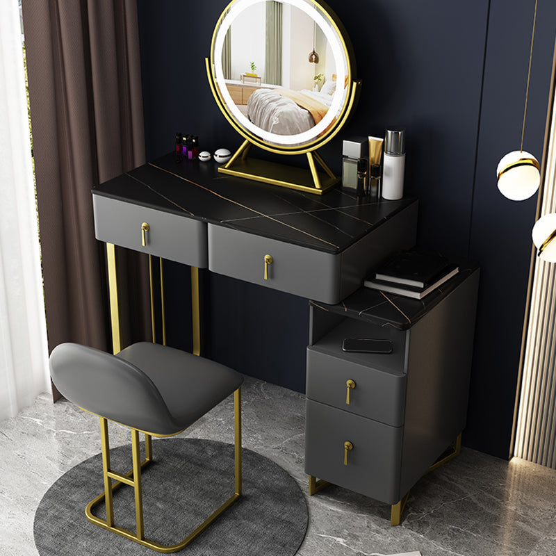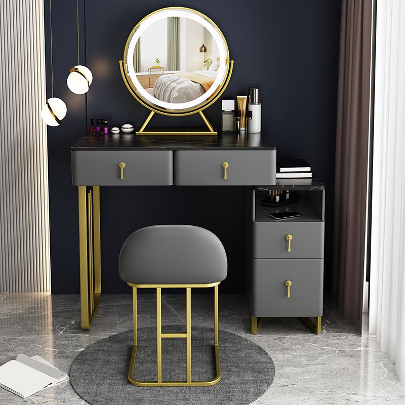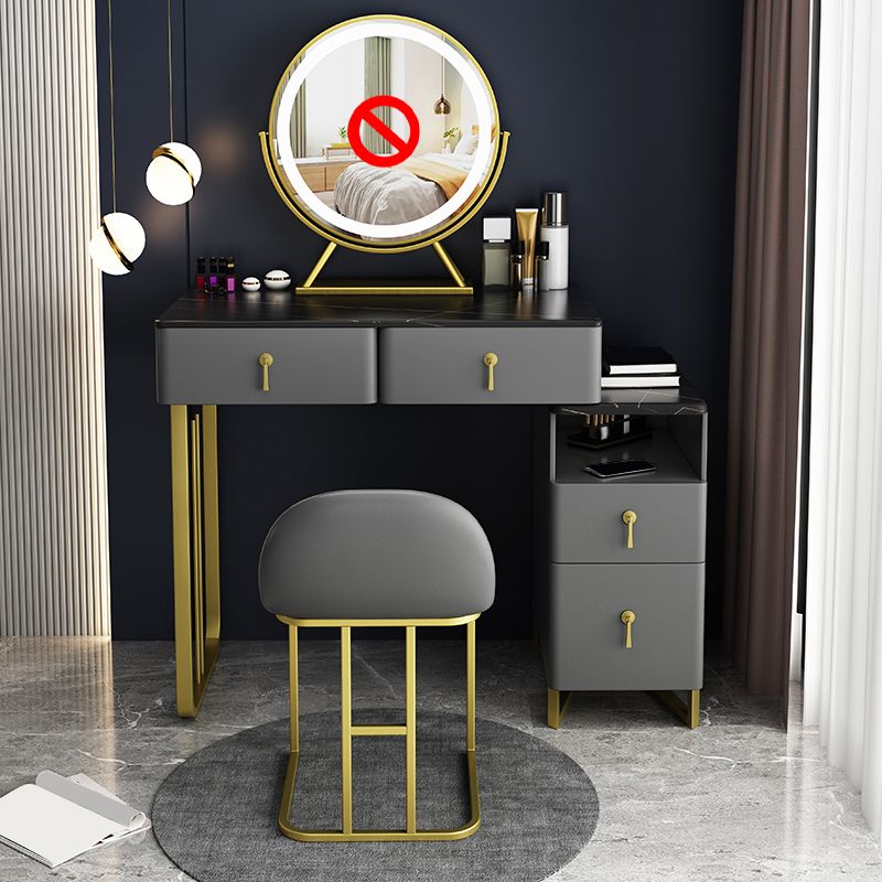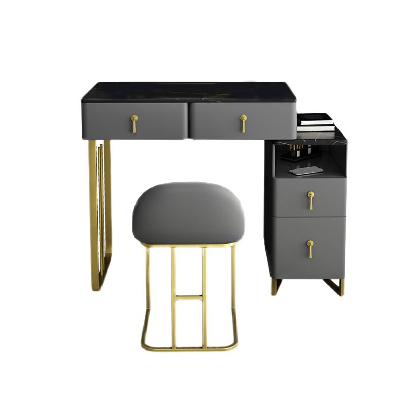 Grijze kaptafel echte lederen ijdelheid tafel met opbergladen