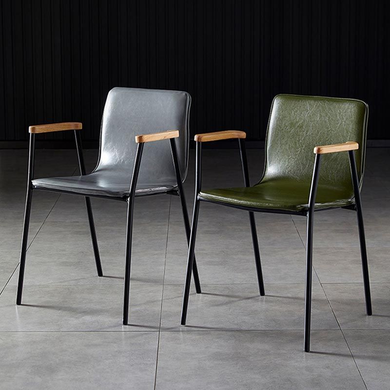 Industriële eetgelegenheden lederen eetkamerstoel met metalen basis