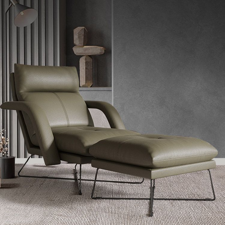 Metalen frame standaard ligstoel vaste kleur lederen reclinner stoel met poef