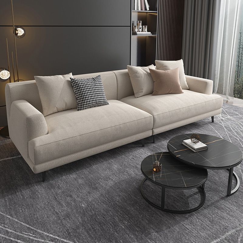 Moderne stoffen bank verzonken arm zitplaatsen met kussens in het wit