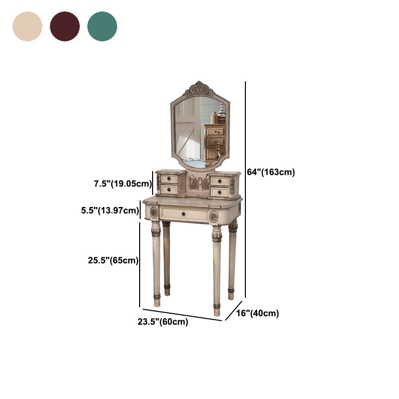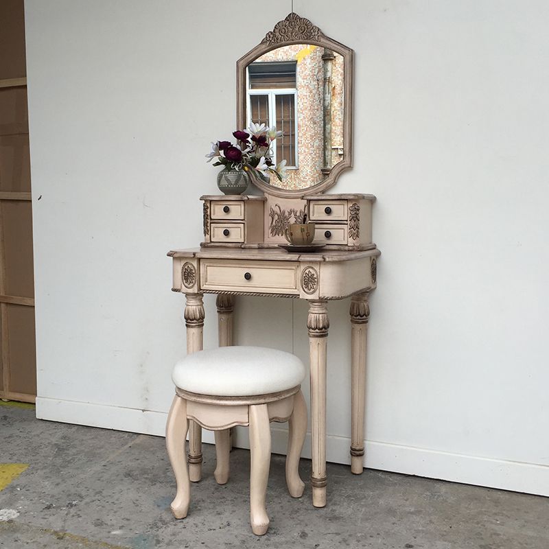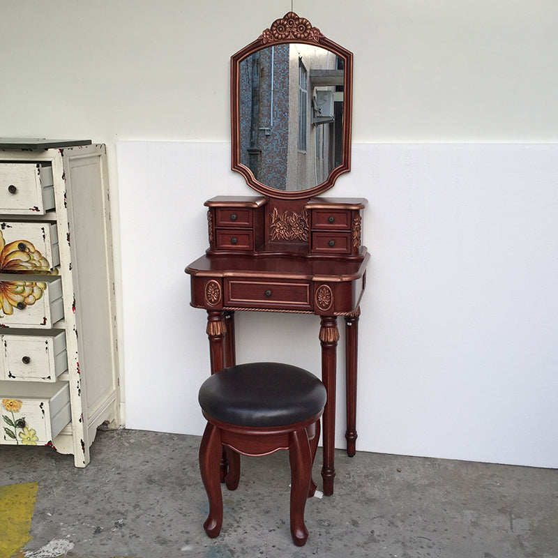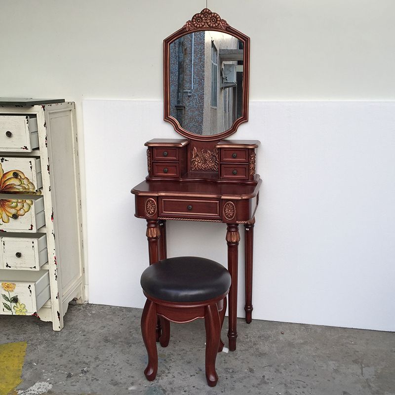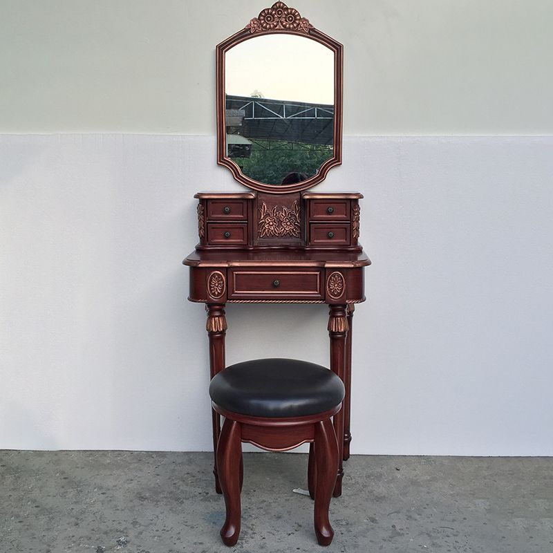 Eiken ijdelheid set met ontlasting 64.17 "Hoge ijdelheid met lade en spiegel