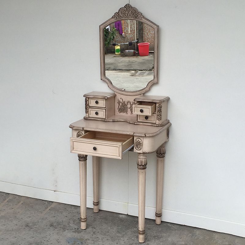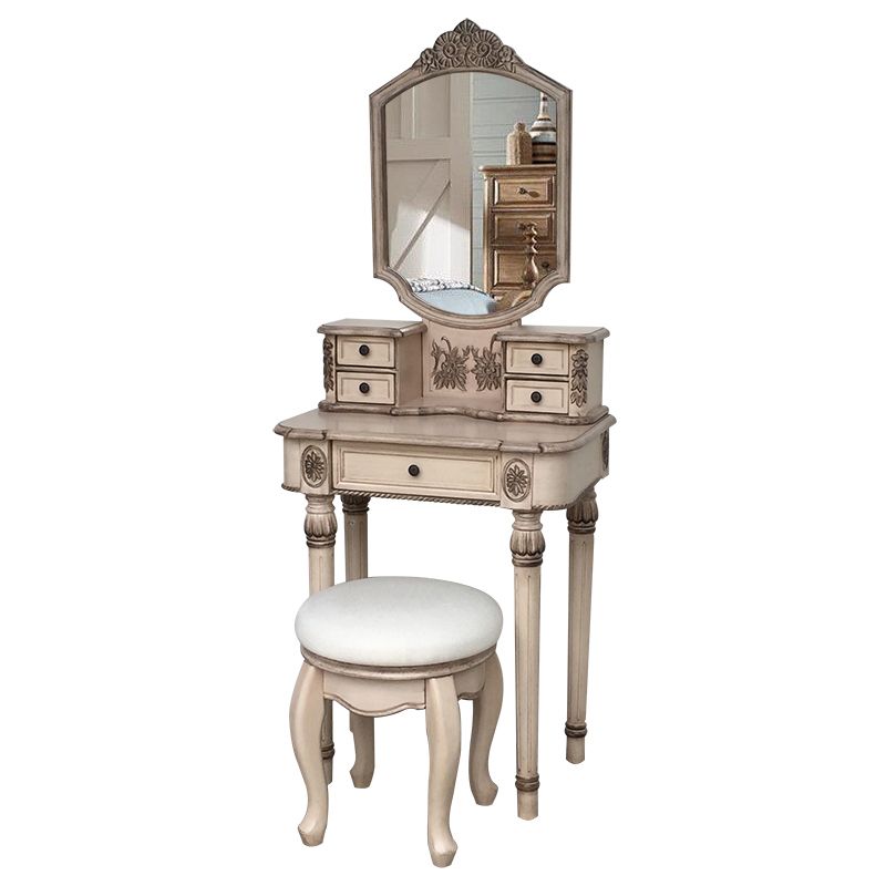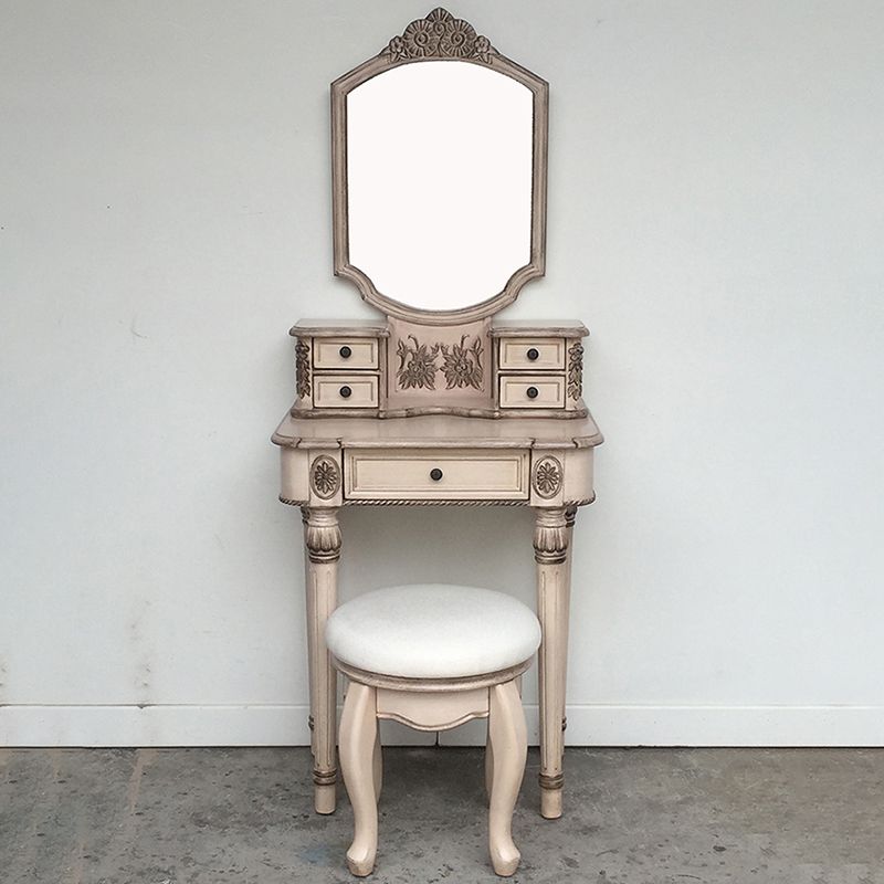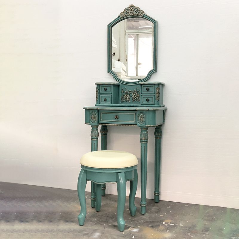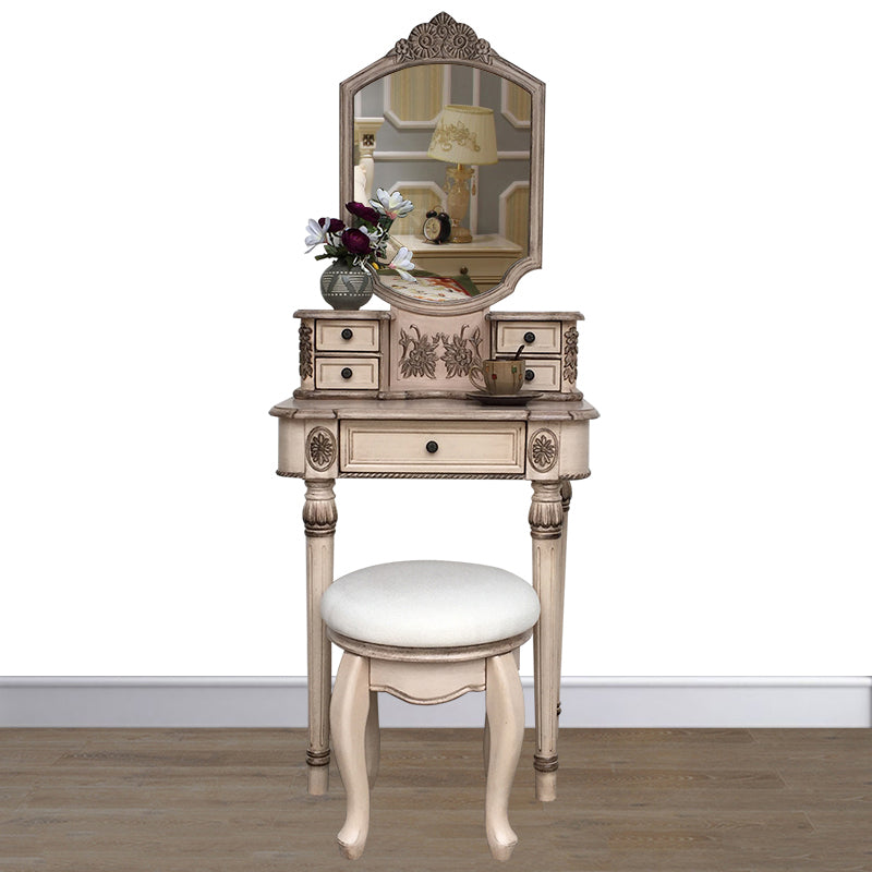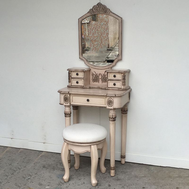 Eiken ijdelheid set met ontlasting 64.17 "Hoge ijdelheid met lade en spiegel