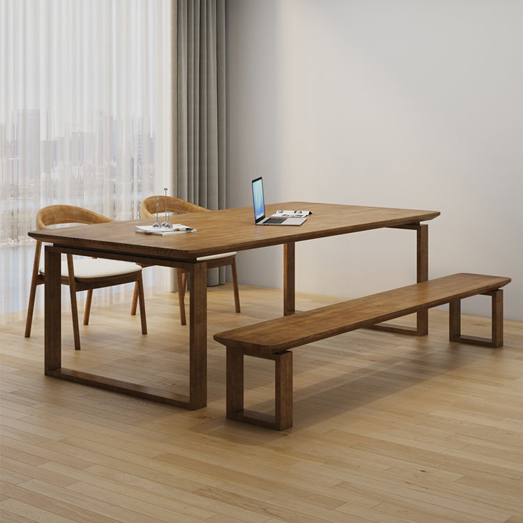 Rechthoek kantoor schrijftafel moderne massief houten vergaderbalie met sleeënbasis