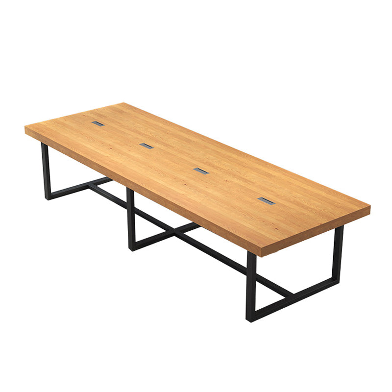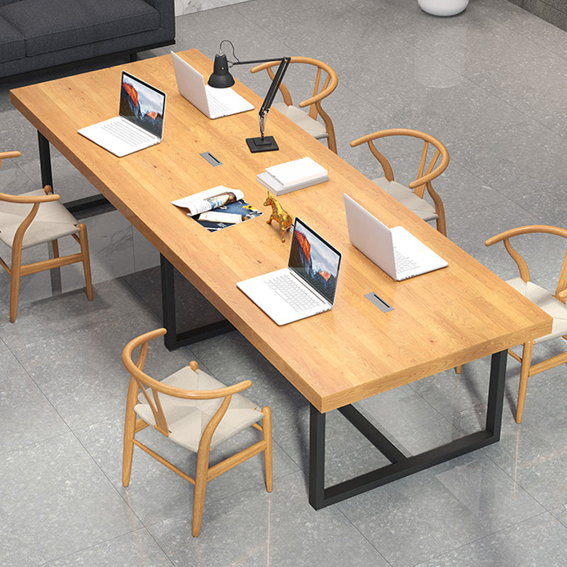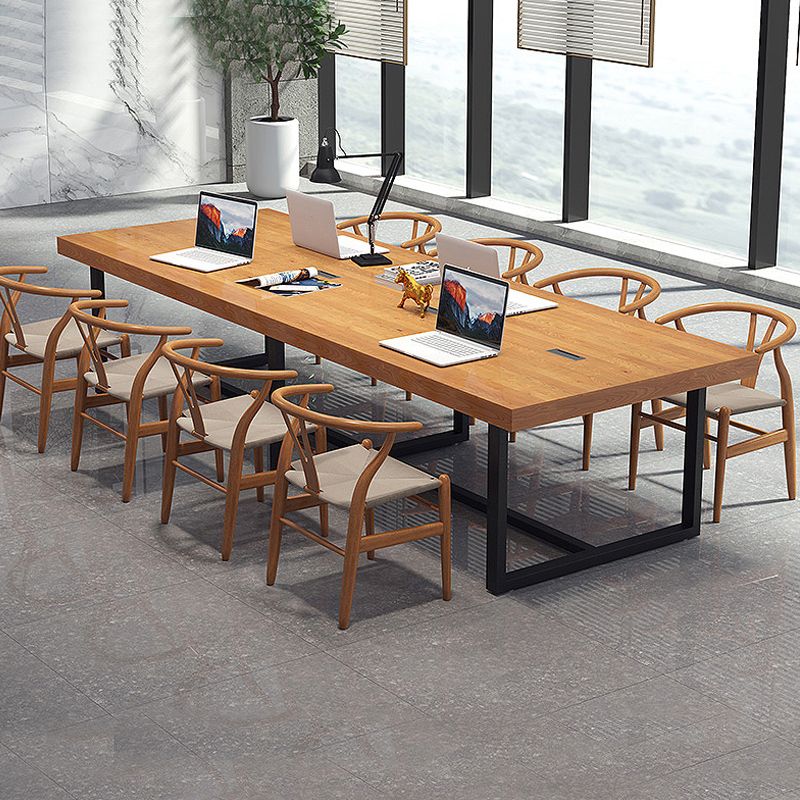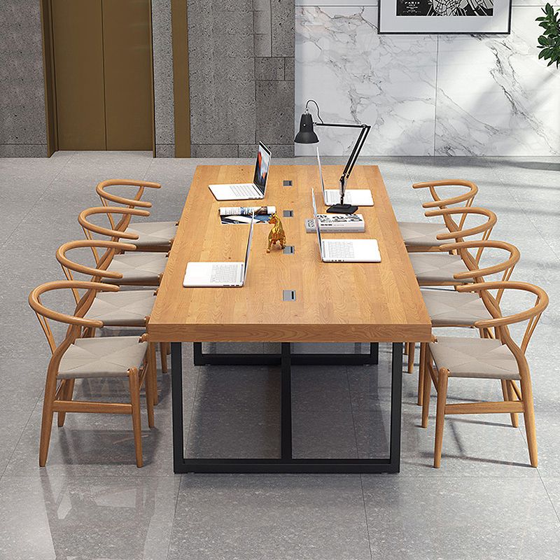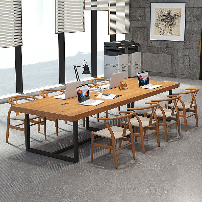 Rechthoekige industriële kantoorbureau massief hout schrijfbureau met metalen benen