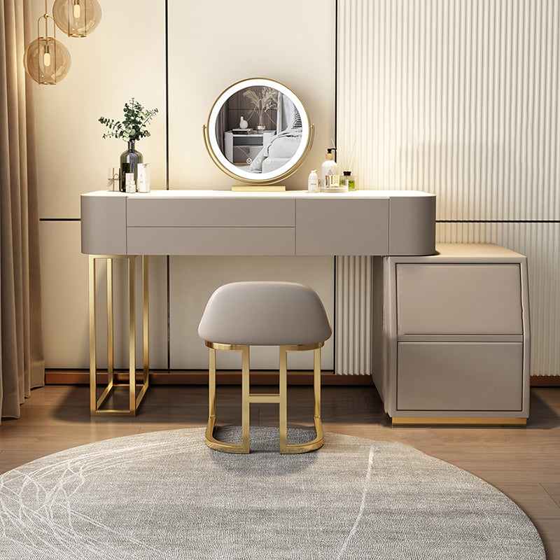 Steen top make-up ijdelheid bruin massief hout ijdelheid kleedtafel set met 5 laden