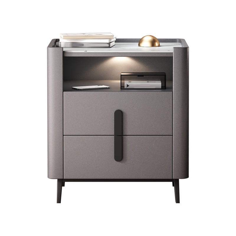 22 inch H Nightstand Moderne Open opbergsteen Top 2-ladel nachttafel met benen