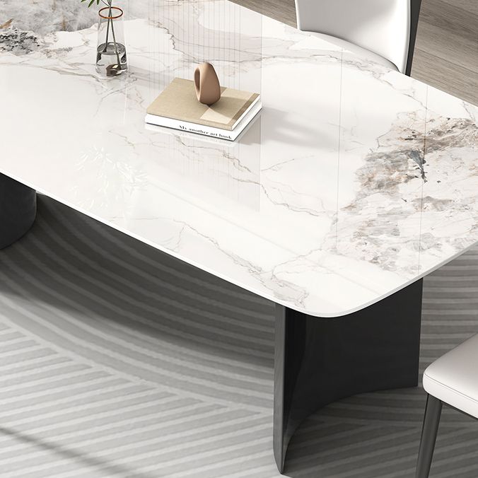 Hedendaagse grijze rechthoekige stenen eettafel met dubbele voetstuk