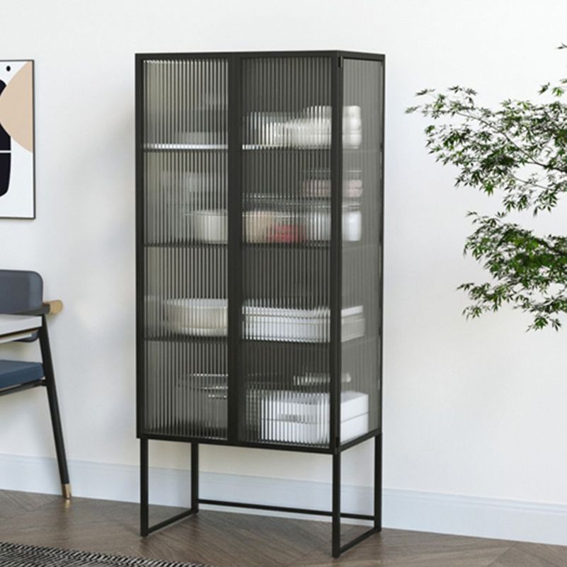 Eigentijdse metalen curiokast glazen deuren buffetkast voor eetkamer