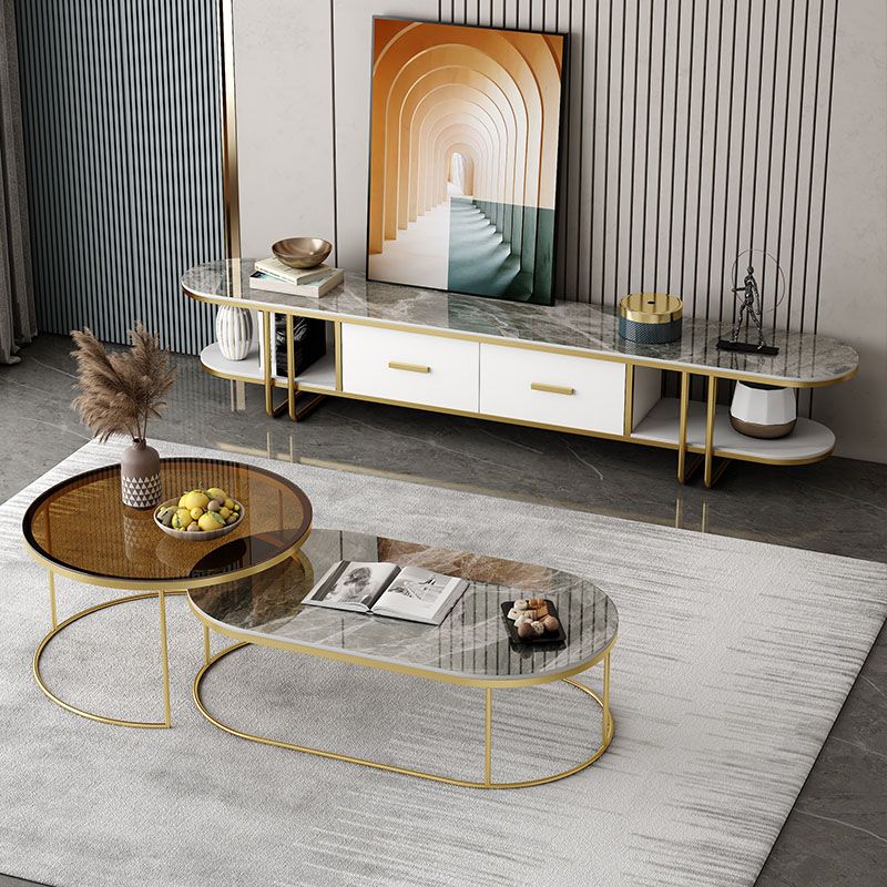 Hedendaagse Slate Top TV Media Console 2 Lades TV Stand Console