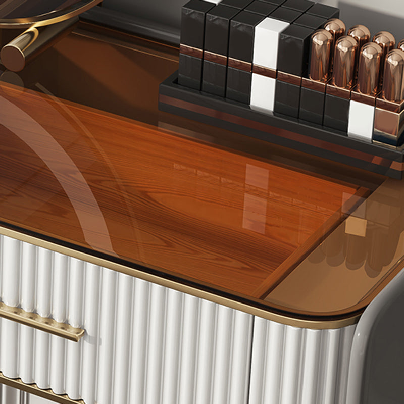 Glam Glass Top ijdelheid make -uptafel ontlasting ingesteld met opbergladen
