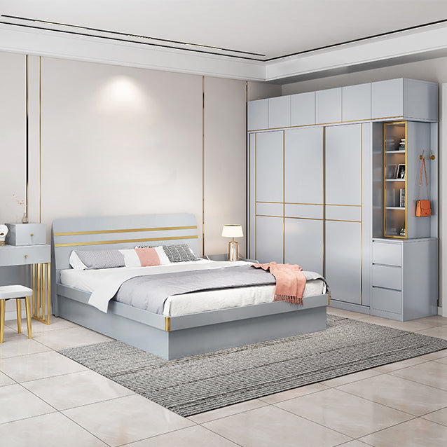 Grijze kleur garderobe armoire houten zachte close deur garderobe kast met 2-ladel