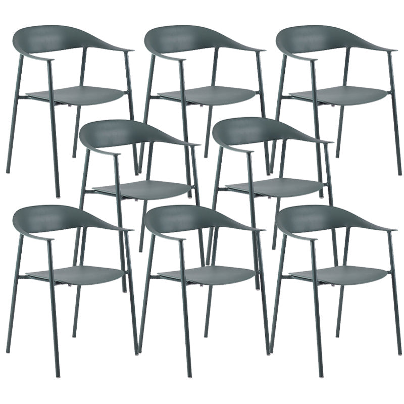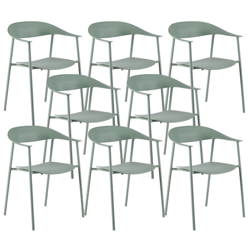 Moderne open achterzijde stoel plastic eetkamerstoel met metalen basis