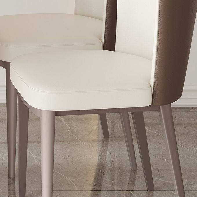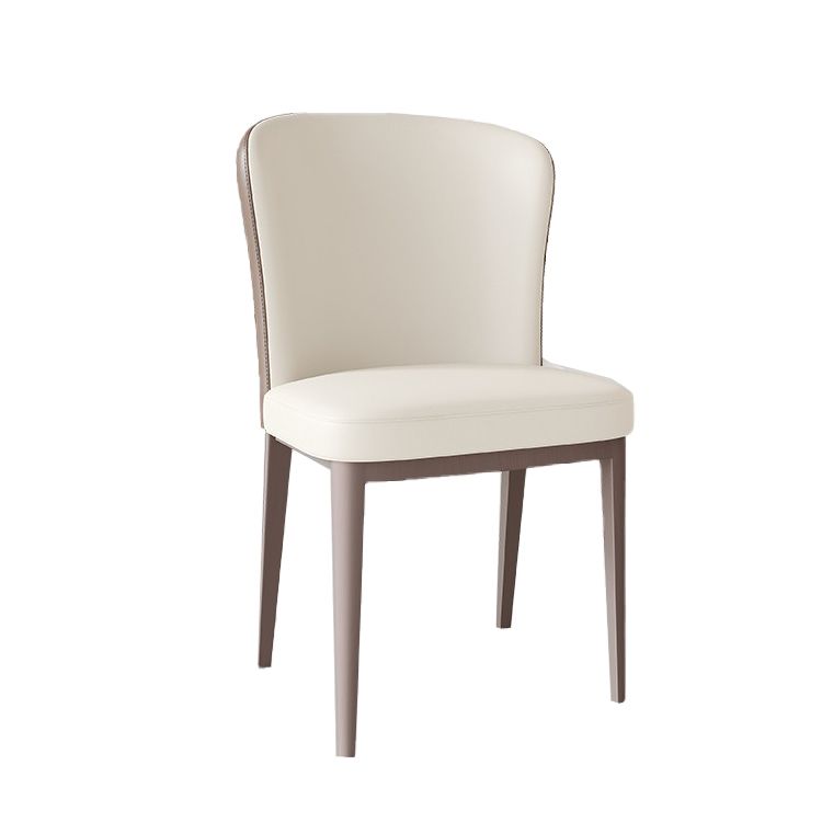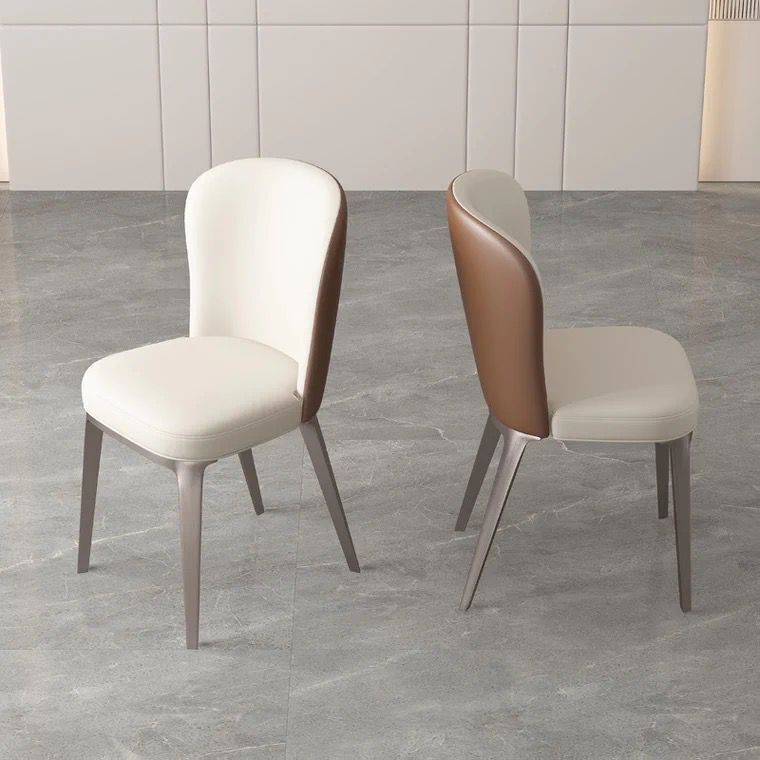 Moderne eenvoudige zijstoel faux lederen eetkamerstoel met metalen basis voor huisgebruik