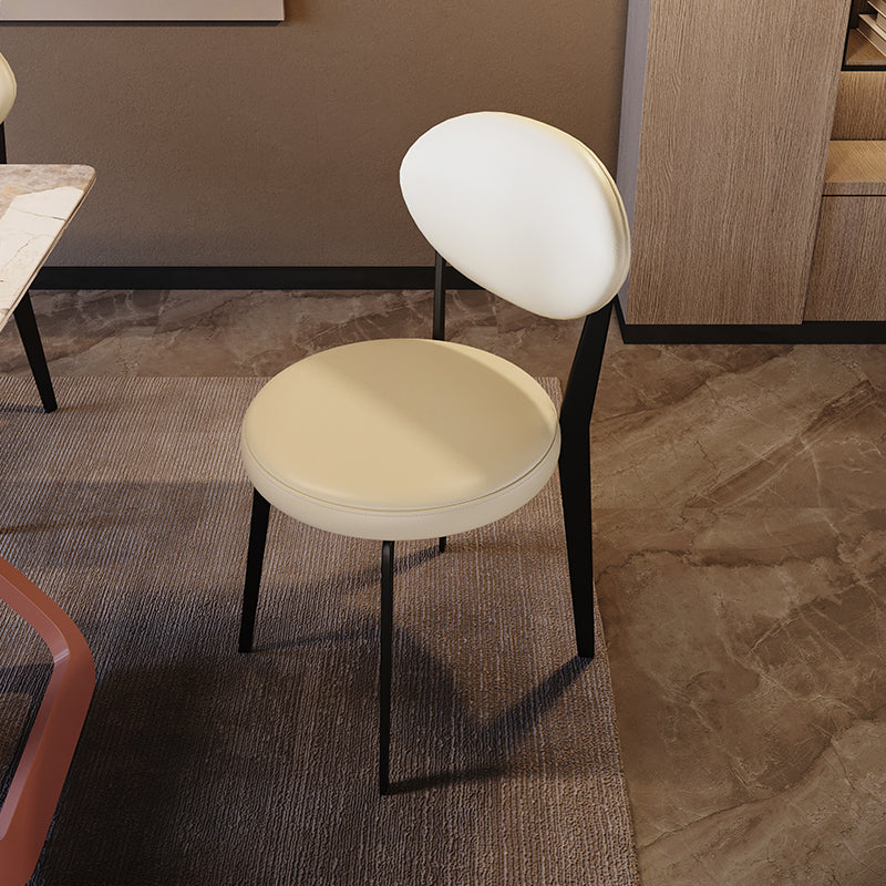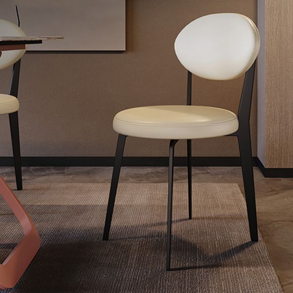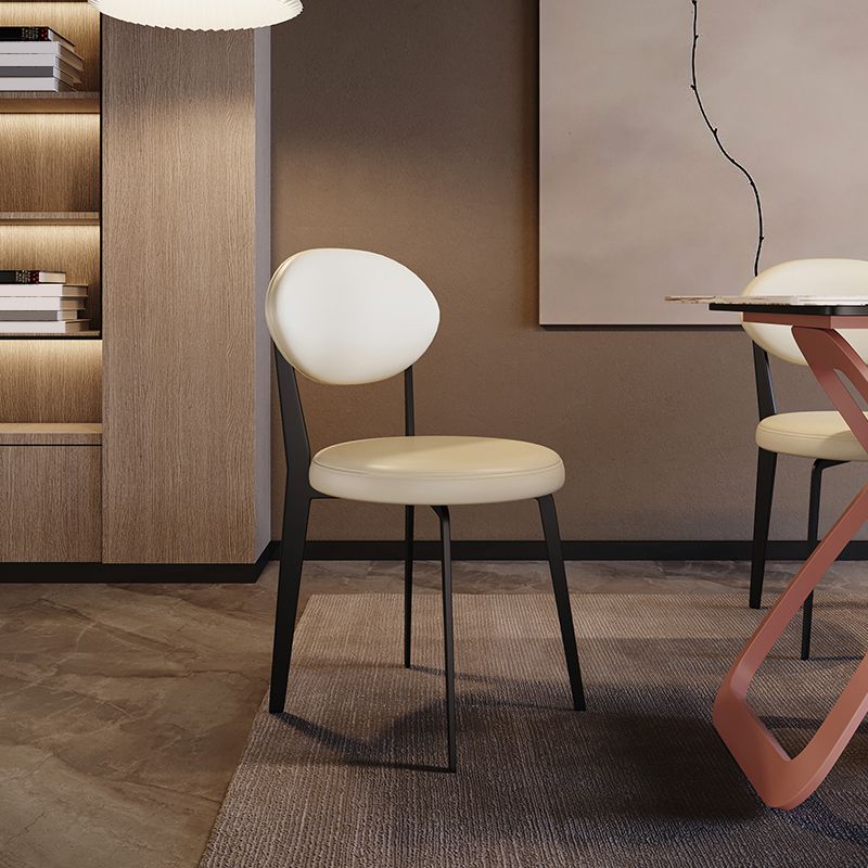 Moderne eenvoudige zijstoel gestoffeerde keuken eetkamerstoel met metalen basis