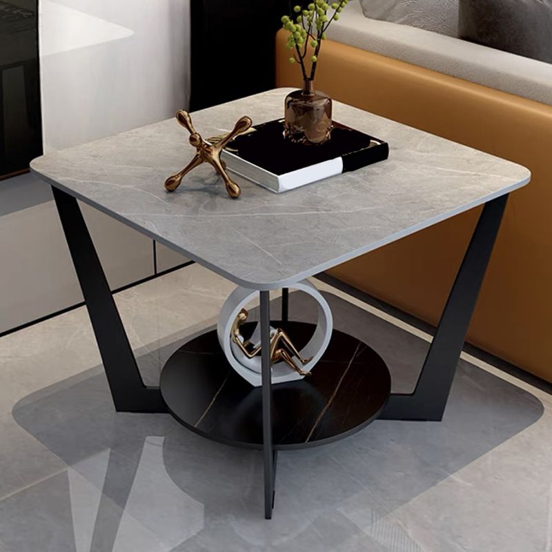 Moderne stijl metalen ijzeren zwarte basisplaat top met opbergrek ronde zijtafel