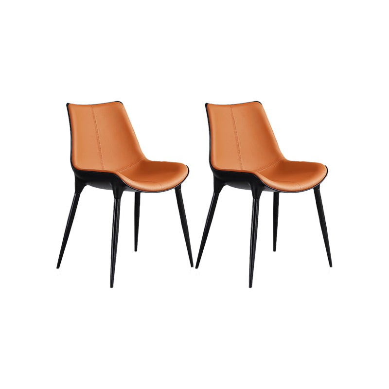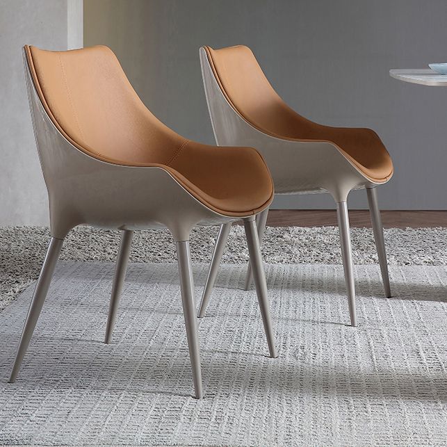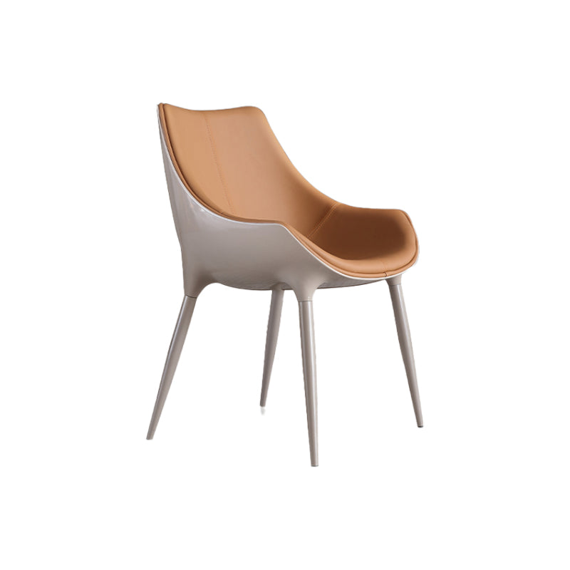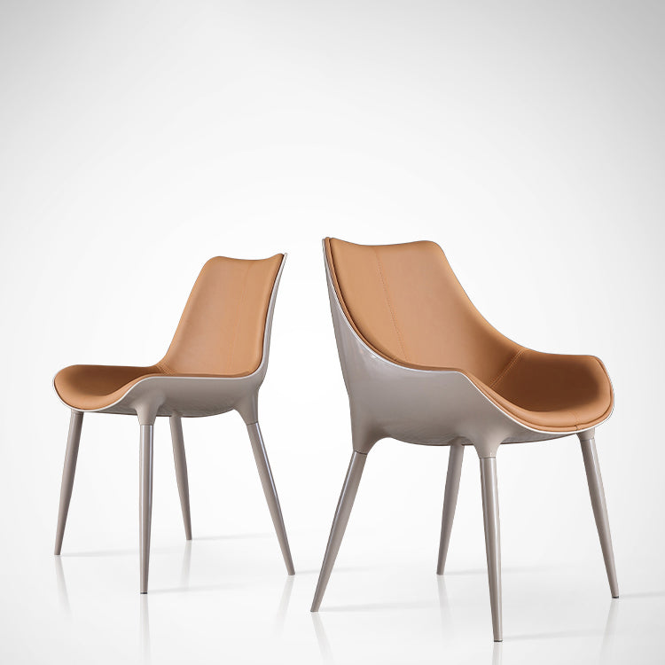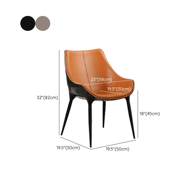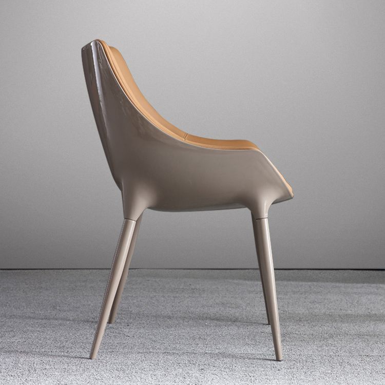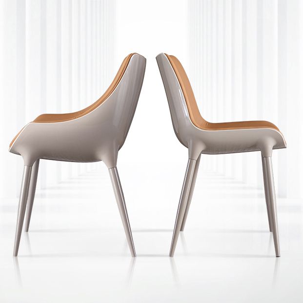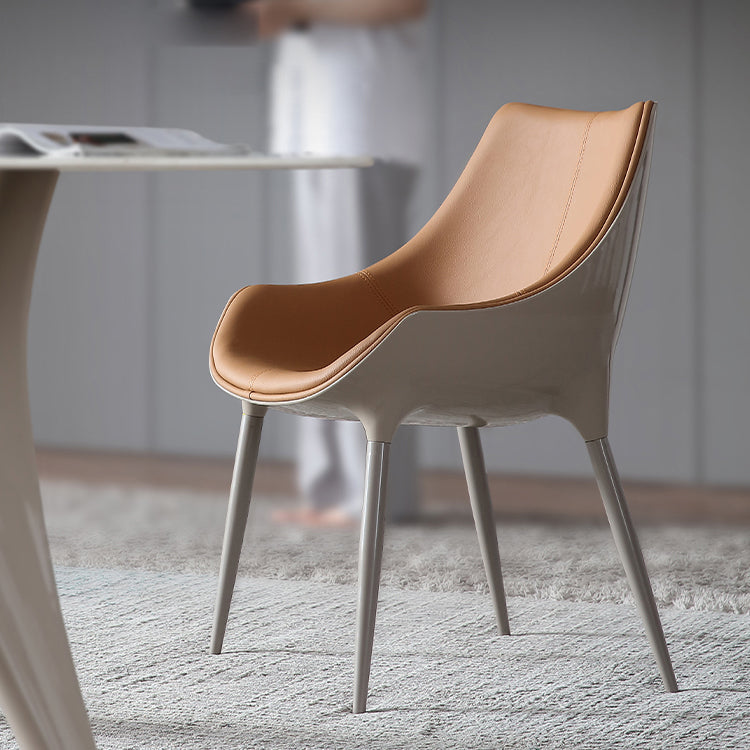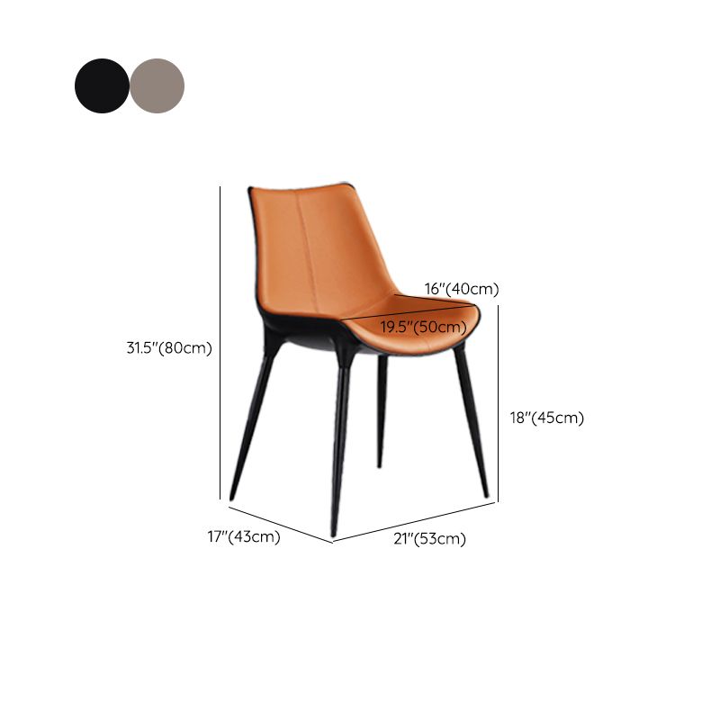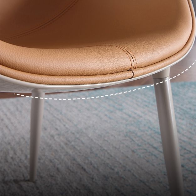 Noordse armloze rugleun lederen stoel met metalen benen voor eetkamer