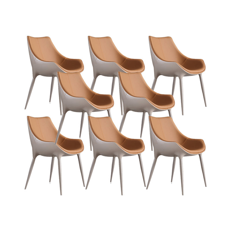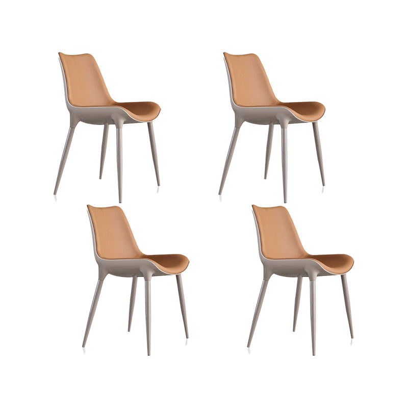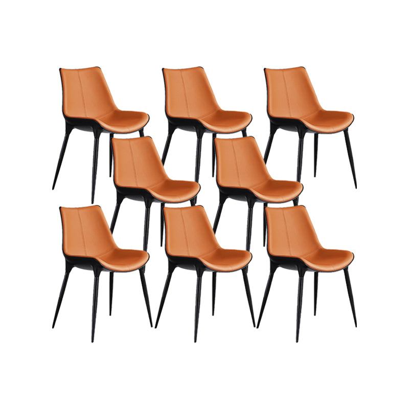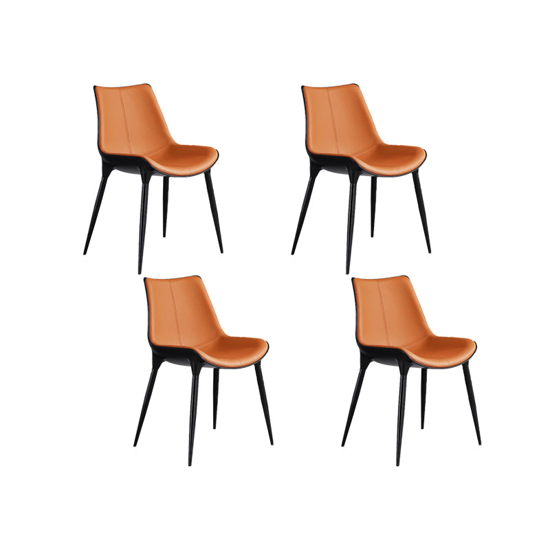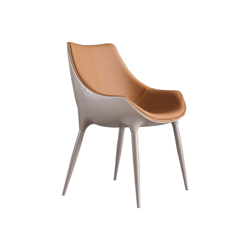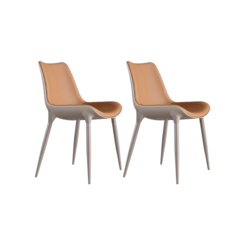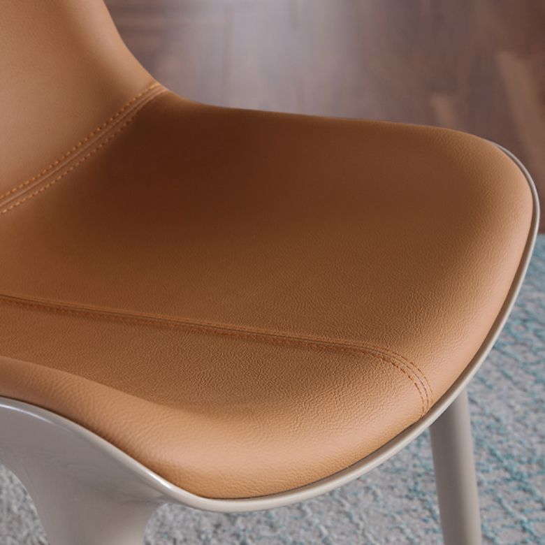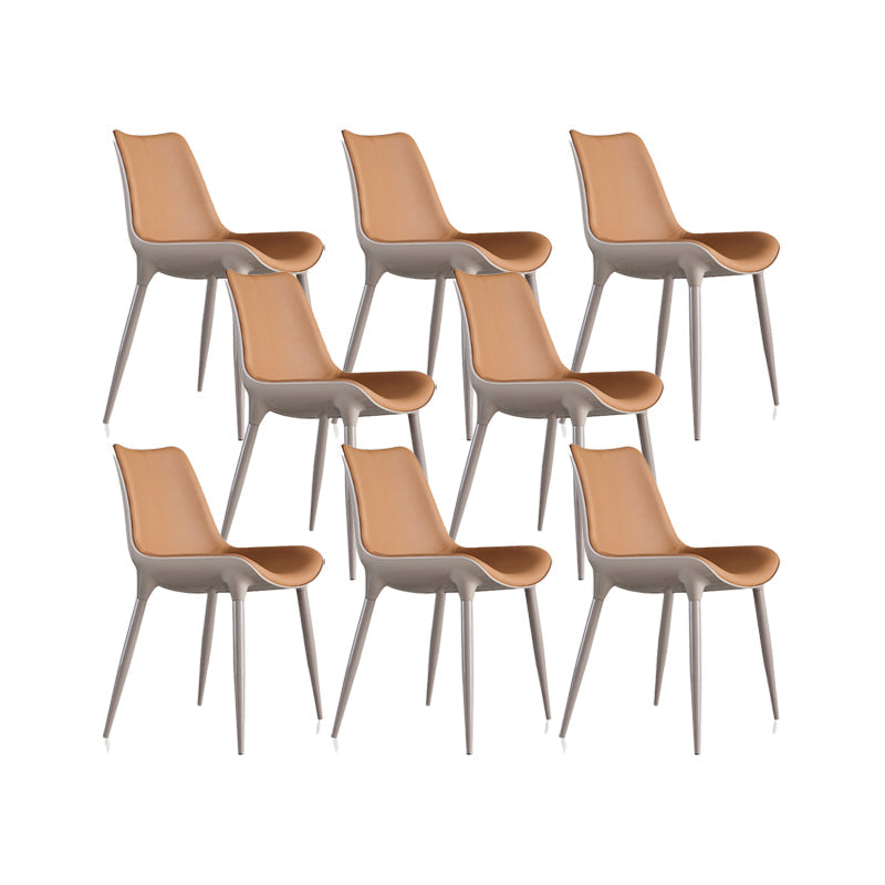 Noordse armloze rugleun lederen stoel met metalen benen voor eetkamer
