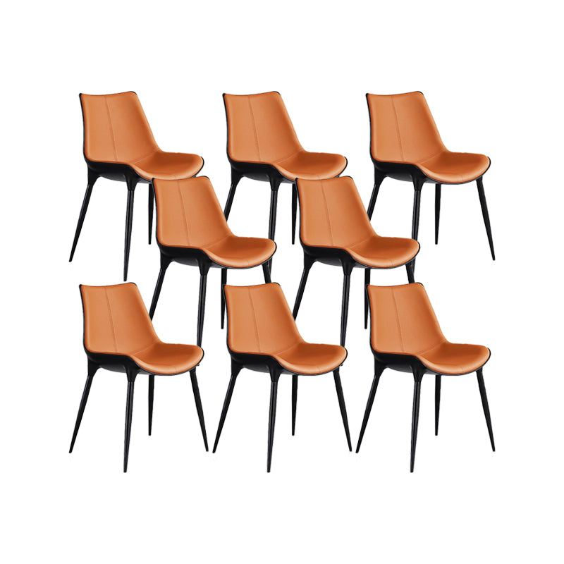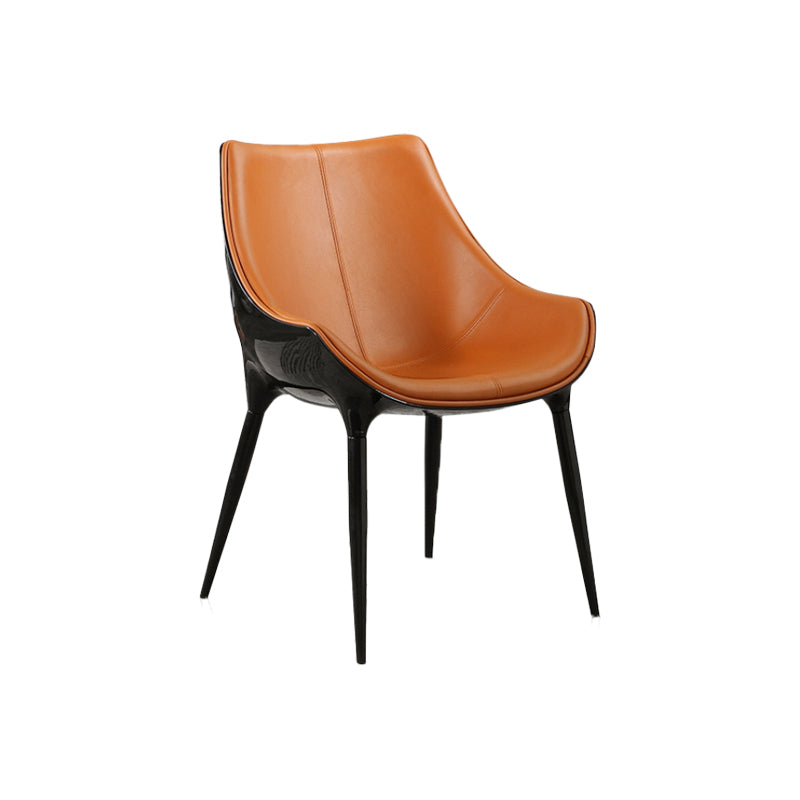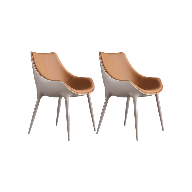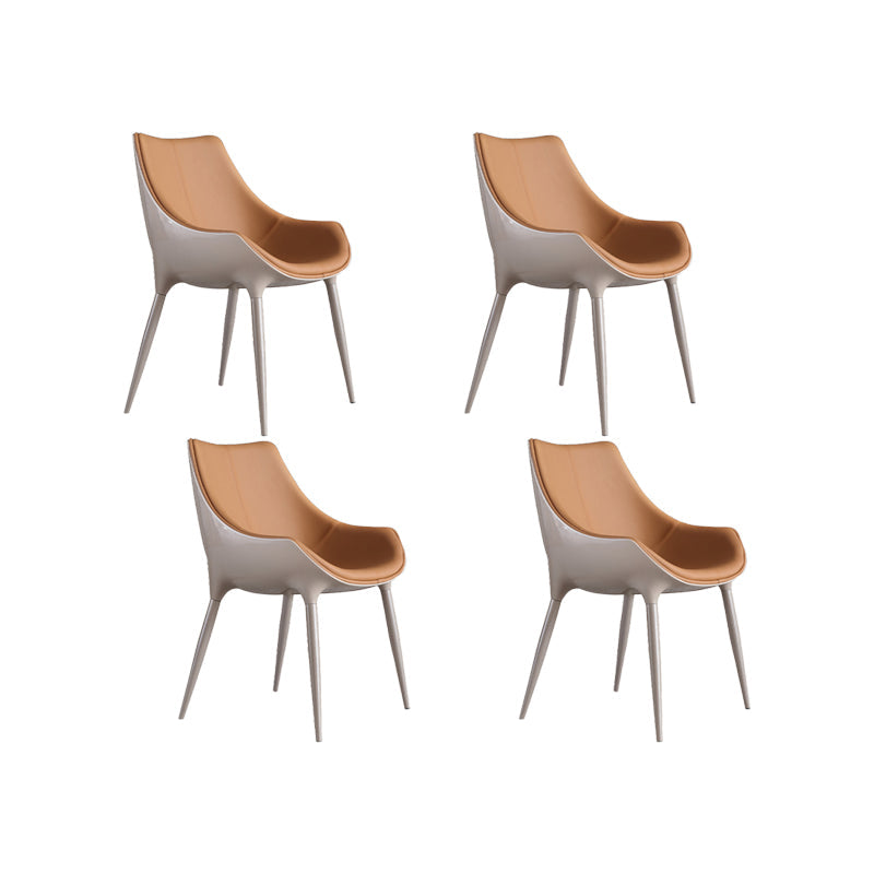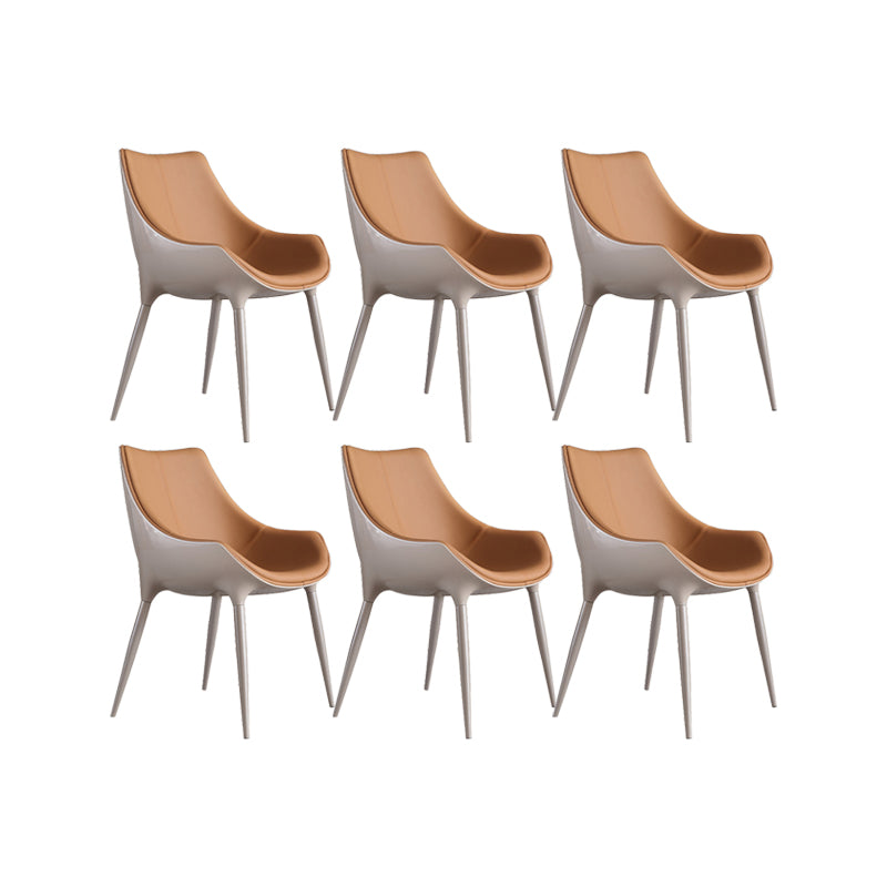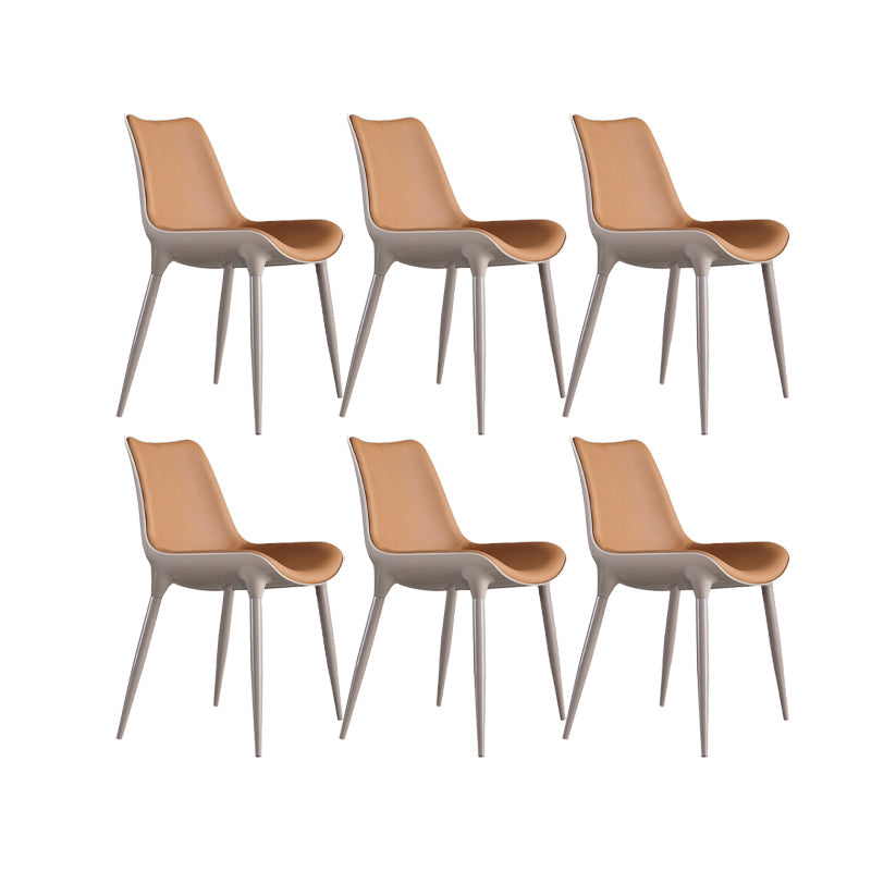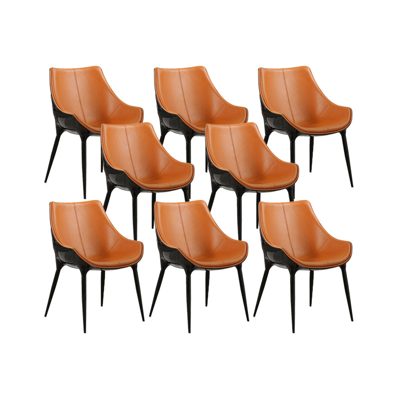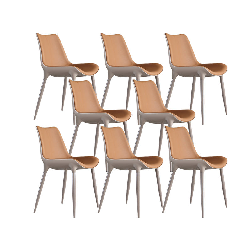 Noordse armloze rugleun lederen stoel met metalen benen voor eetkamer