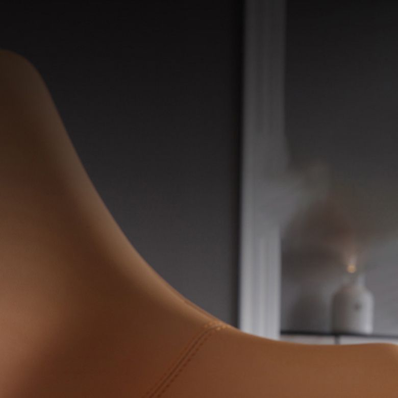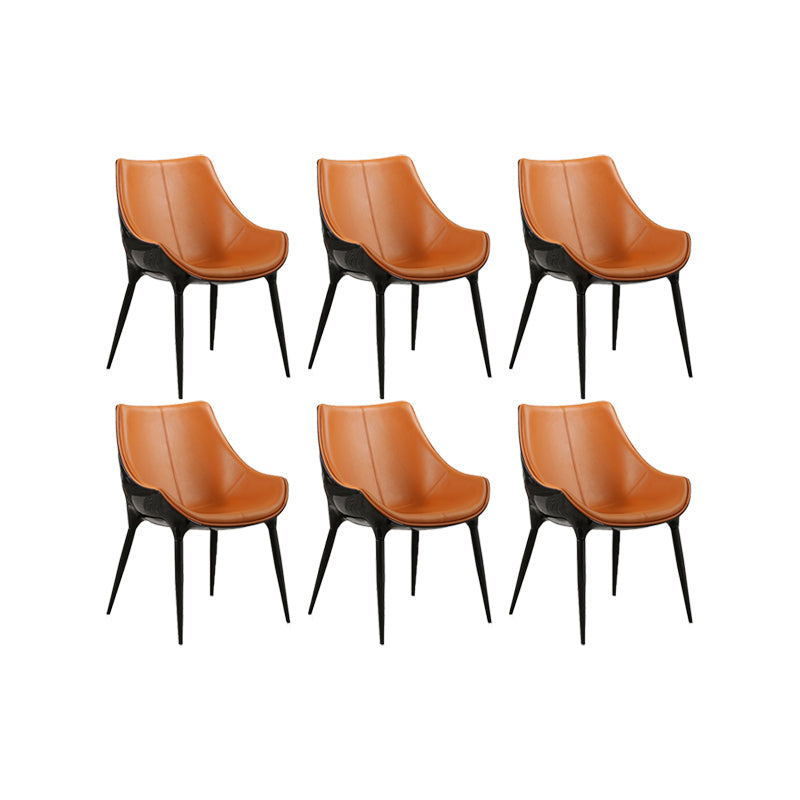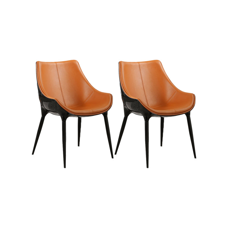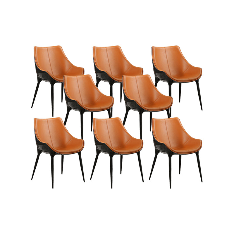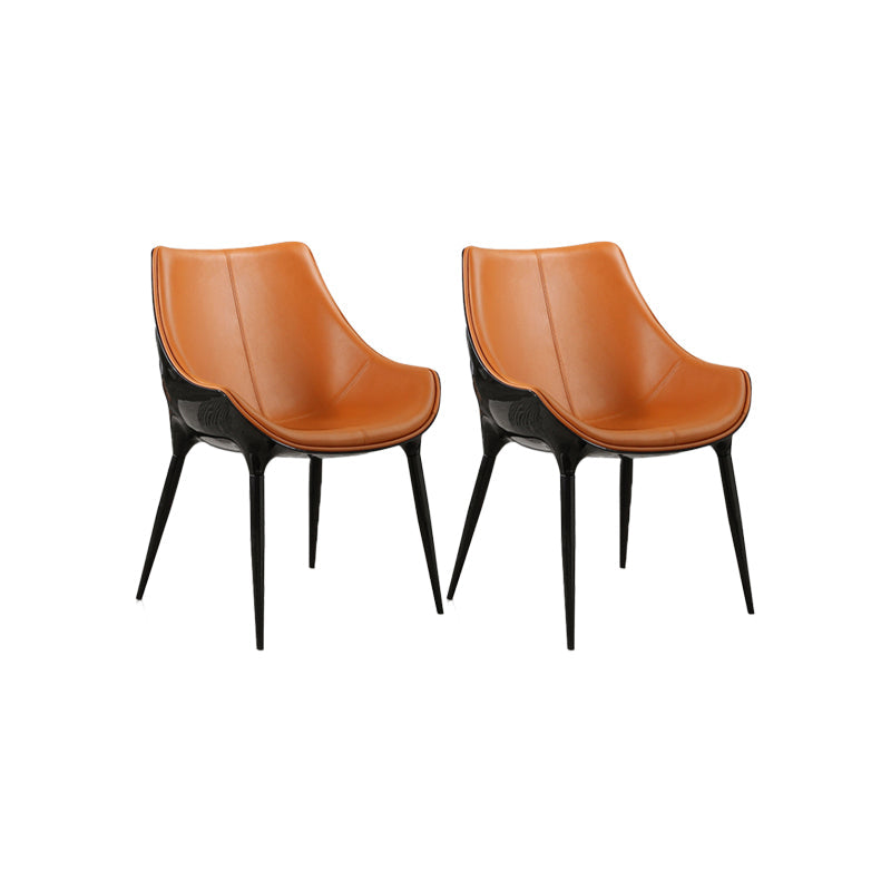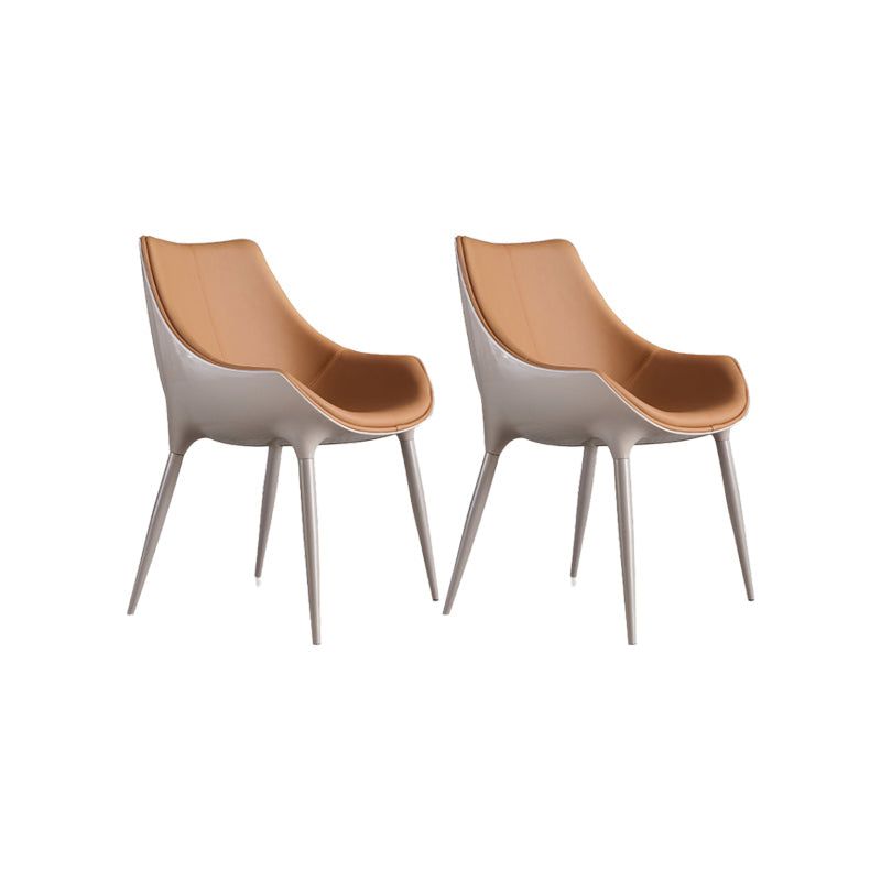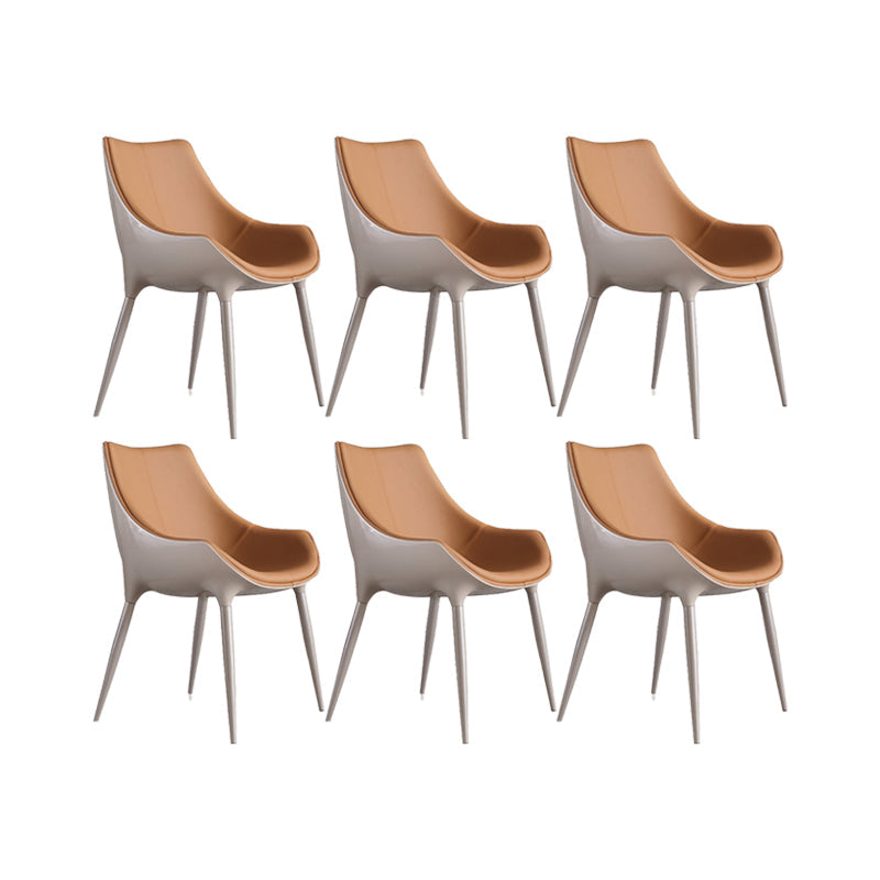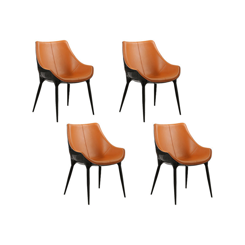 Noordse armloze rugleun lederen stoel met metalen benen voor eetkamer