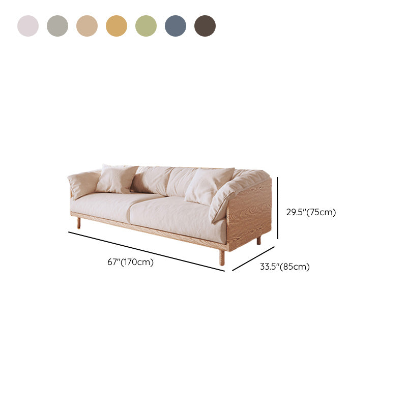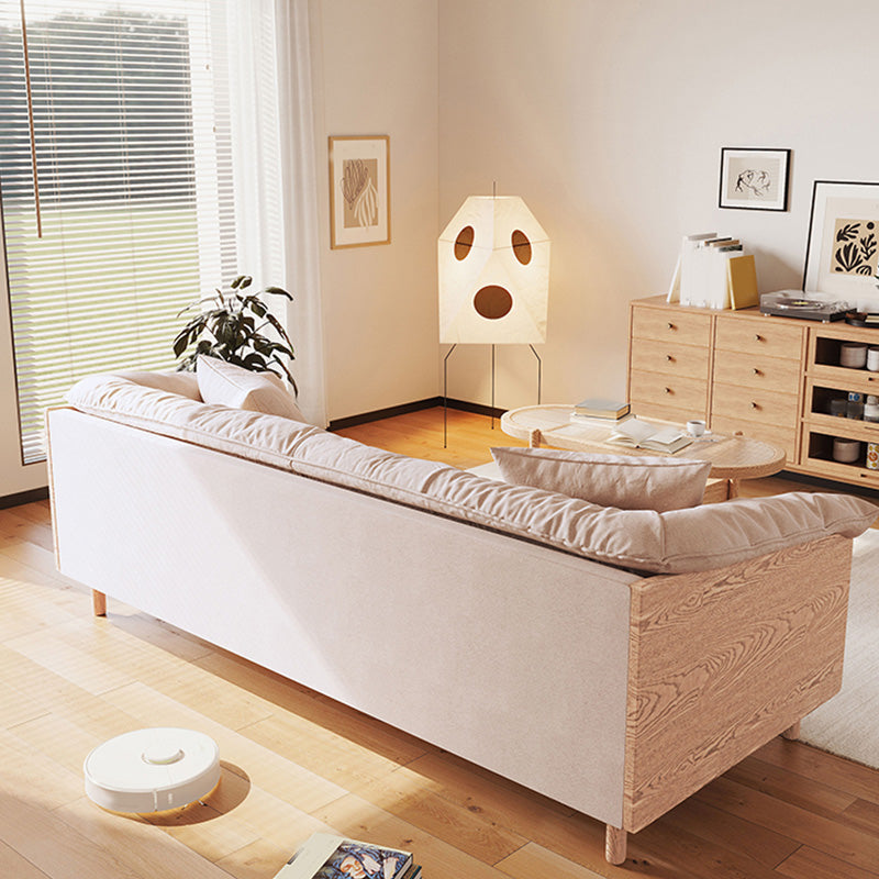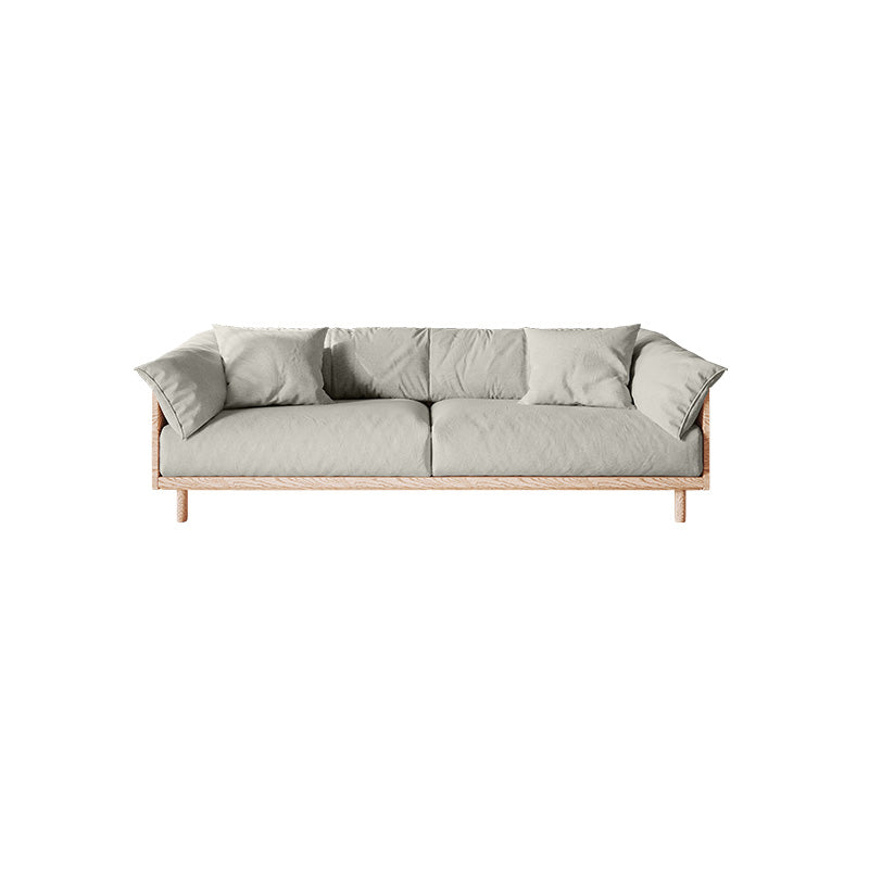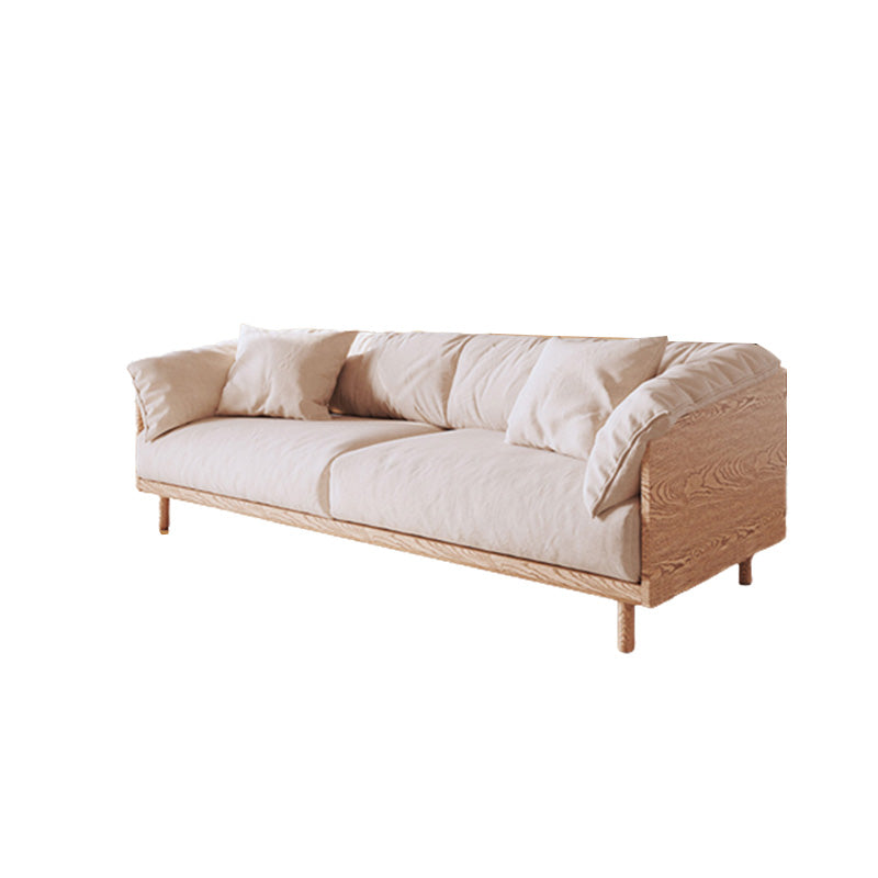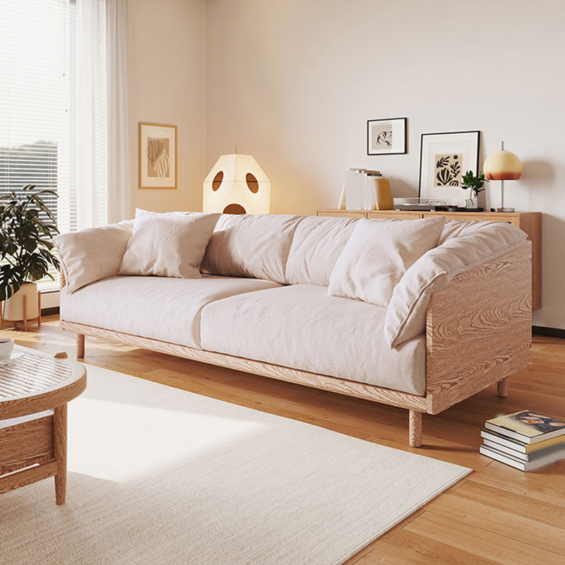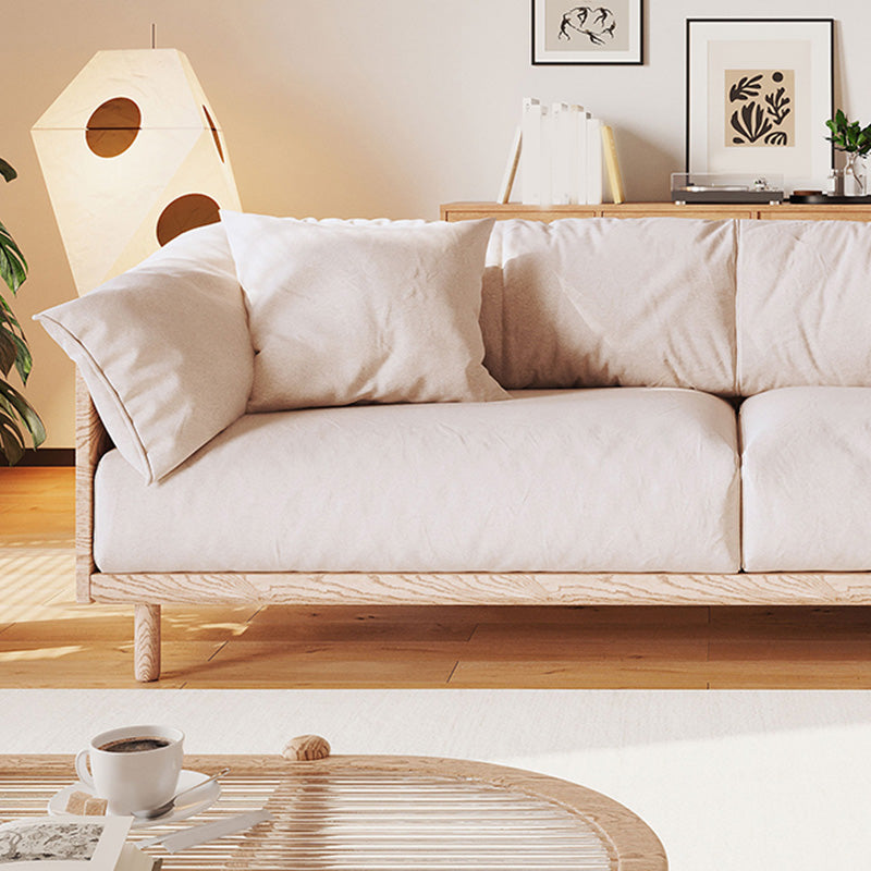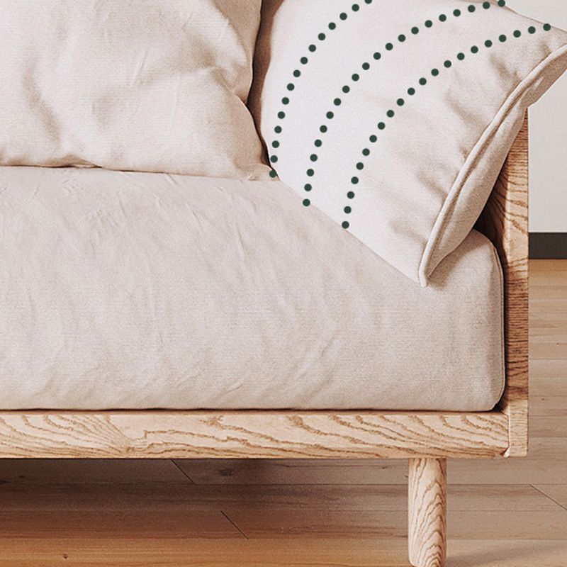 Scandinavische losse achterbank met kussen bovenarm in massief hout en linnen