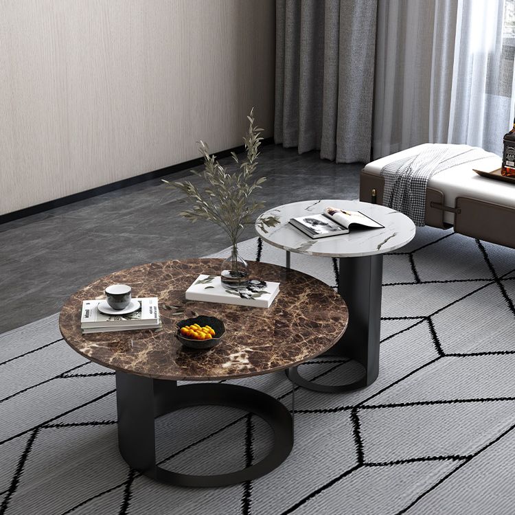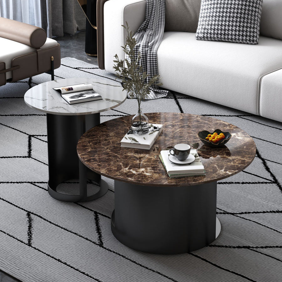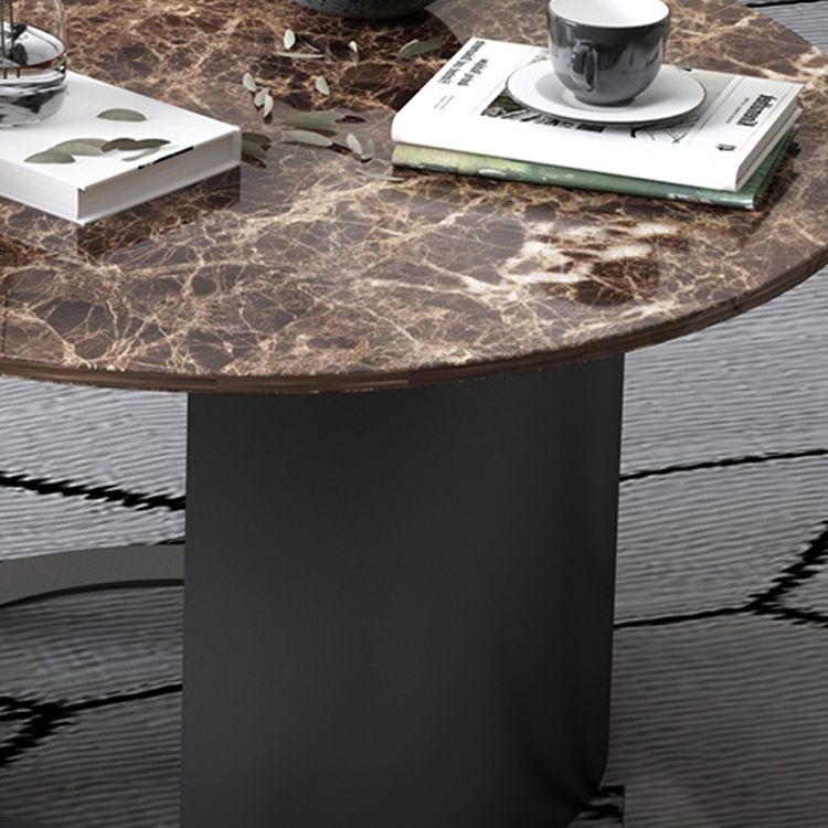 Enkele ronde voetstuk zwarte koffiecocktailtafel met marmeren top