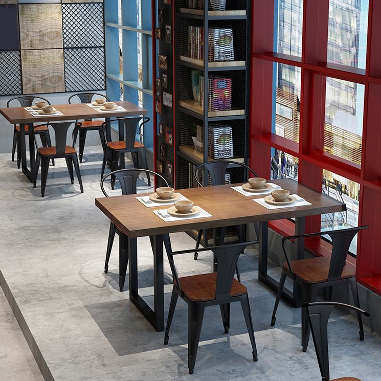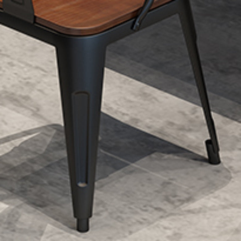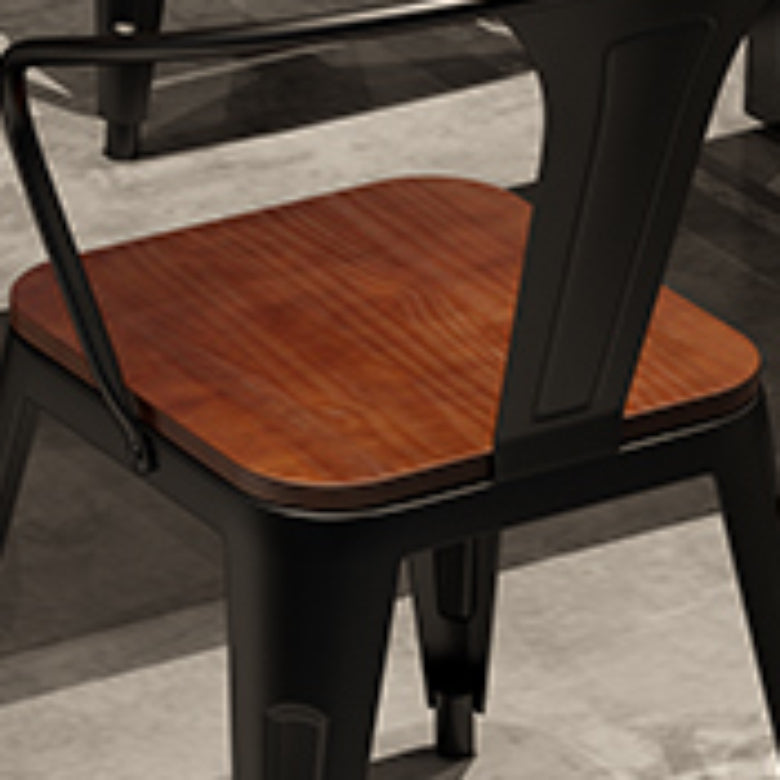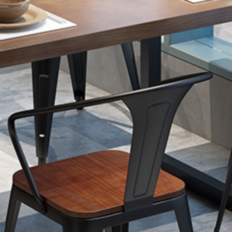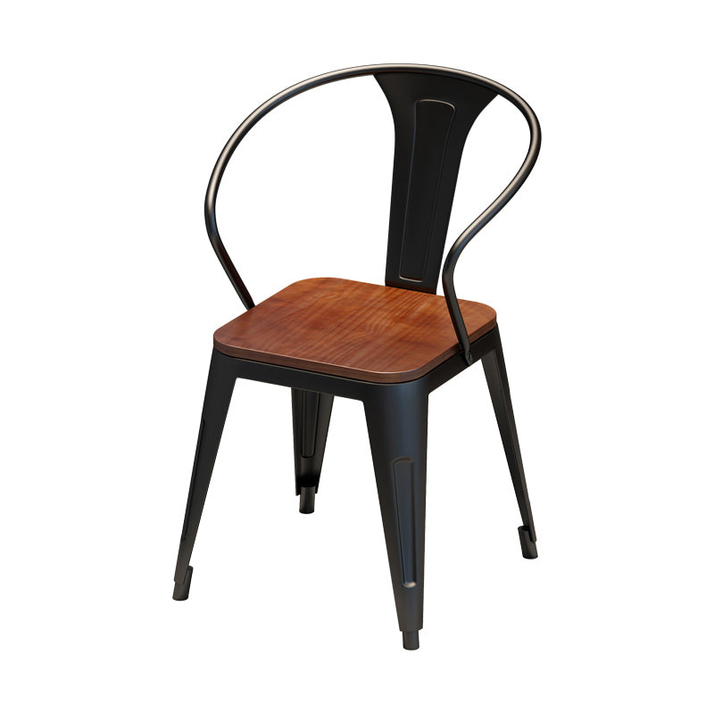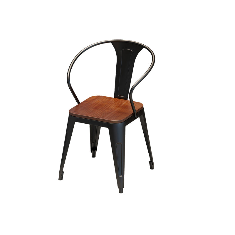 Vaste houten eetstoelen lat achterstoel stoel met metalen basis