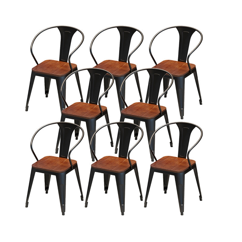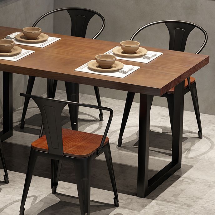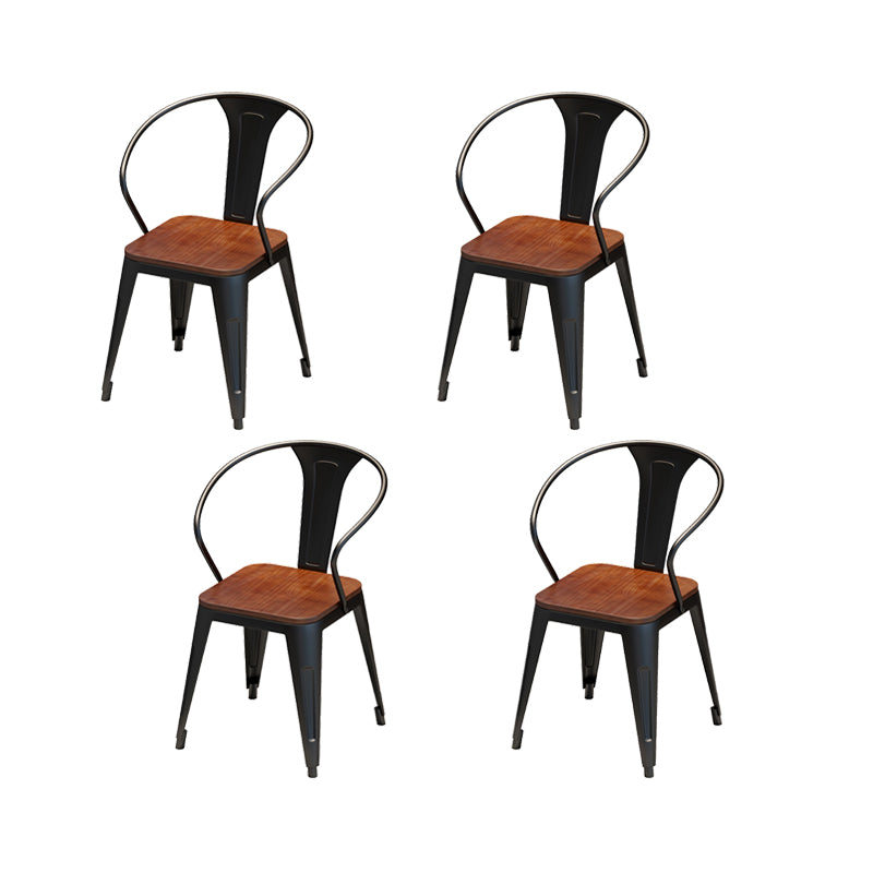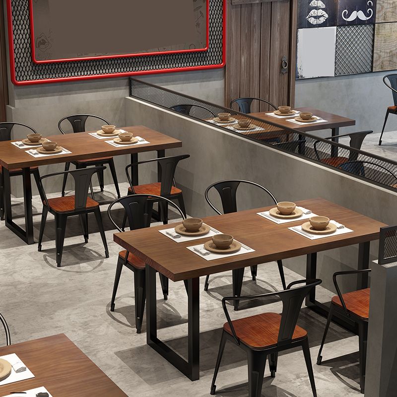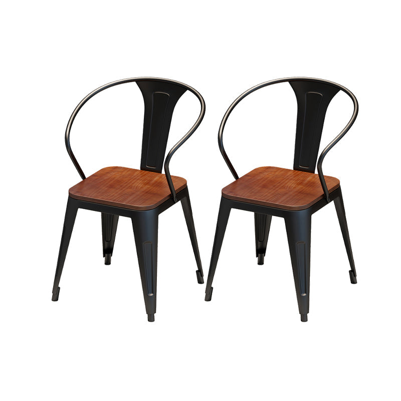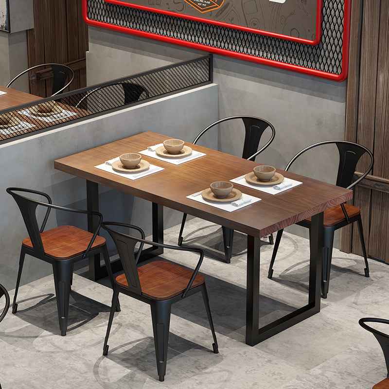 Vaste houten eetstoelen lat achterstoel stoel met metalen basis