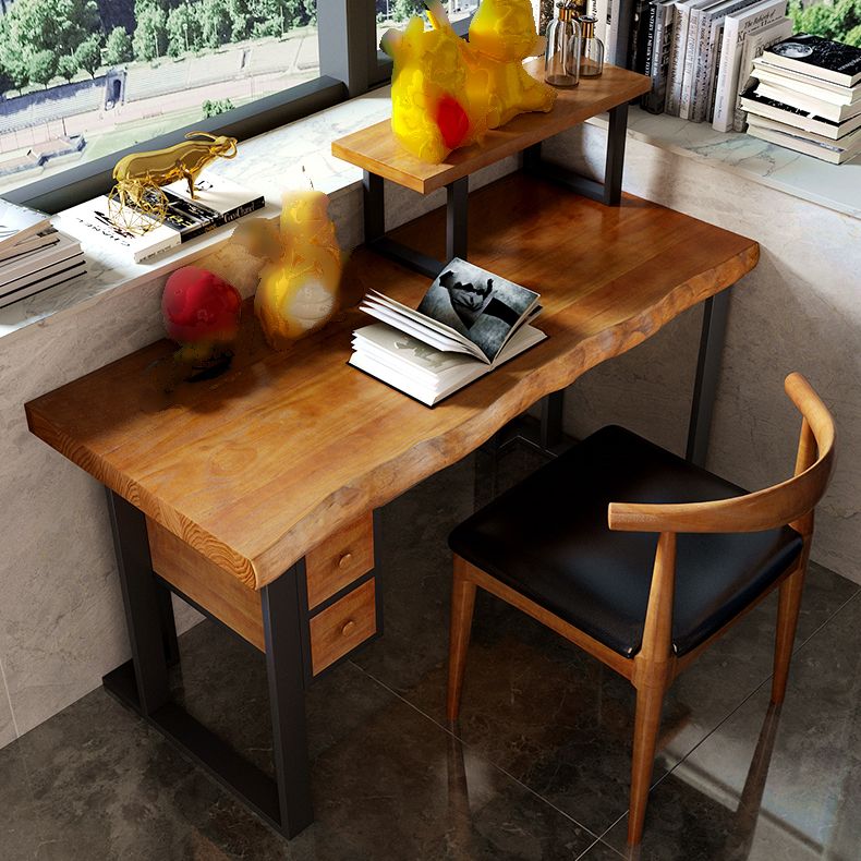 Wood Industrial Computer Desk rechthoekige bureau met 2 laden