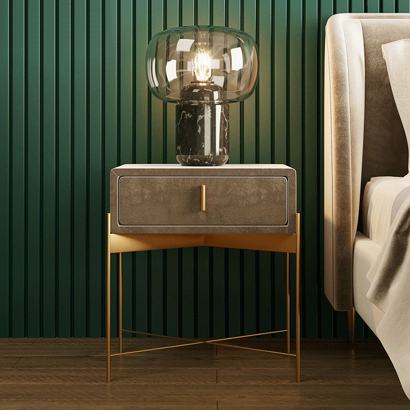 20 '' Tall Faux lederen bed nachtkastje 1-ladel Glam metalen nachttafel met benen