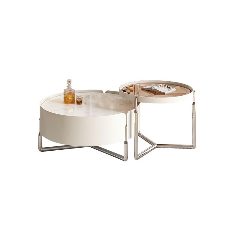 31" Wide White Contemporary Slate Round Nesting Coffee Table Set Clearhalo 'Coffee & Accent Tables' 'Coffee Tables' 'coffee_tables' 'furn' 'furn_coffee_tables' 'Furniture' 'Living Room Furniture' 1200x1200_871288cb-ff51-44a8-892f-4bf82b427f8e