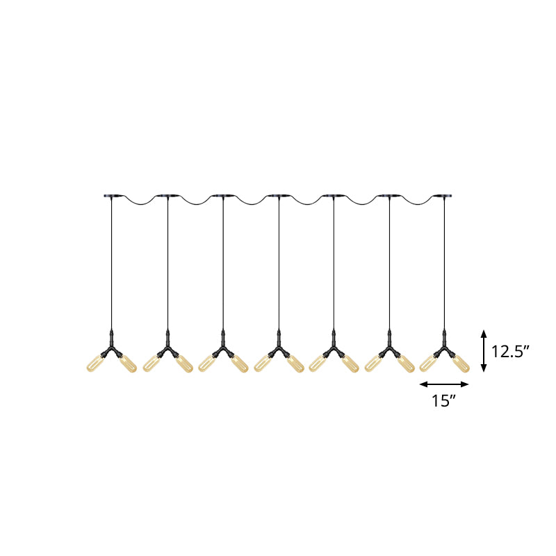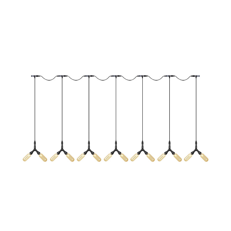 6/10/14 Bulbs Multi Ceiling Light Industrial Restaurant Tandem Pendant Lamp with Capsule Colored Glass Shade in Black Clearhalo 'Ceiling Lights' 'Chandeliers' 'Close To Ceiling Lights' 'Glass shade' 'Glass' 'Industrial Pendants' 'Industrial' 'Middle Century Pendants' 'Pendant Lights' 'Pendants' 'Tiffany' Lighting' 739119