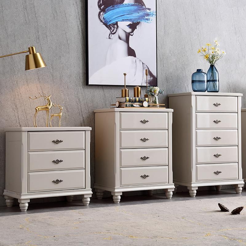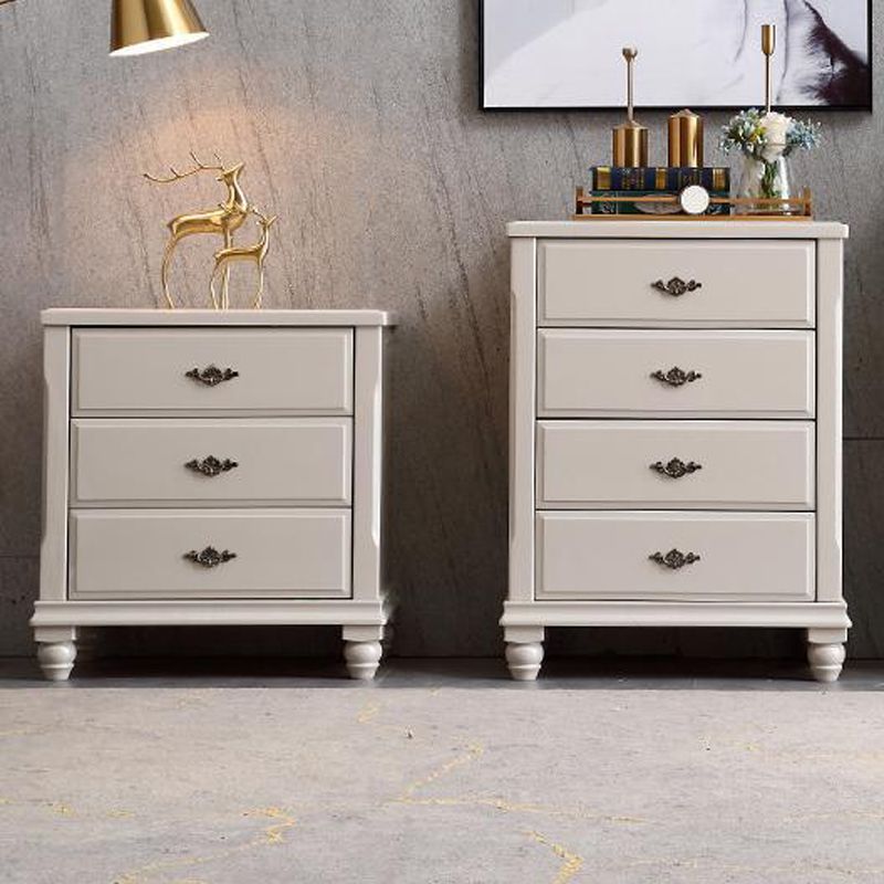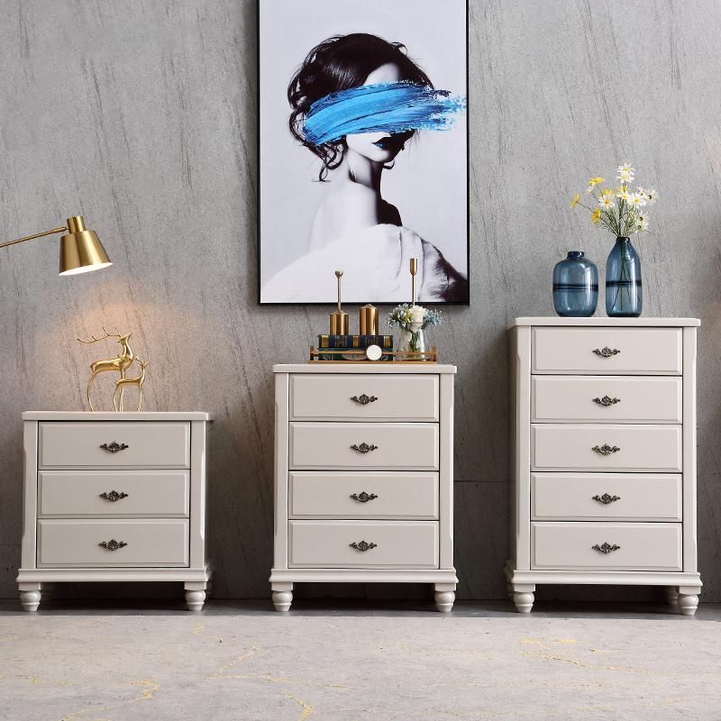 Hedendaagse grijze accentkist met zachte close -laden in rubberwood