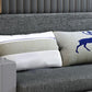 Hedendaagse grijze slaapbank in linnenmengsel en massief hout