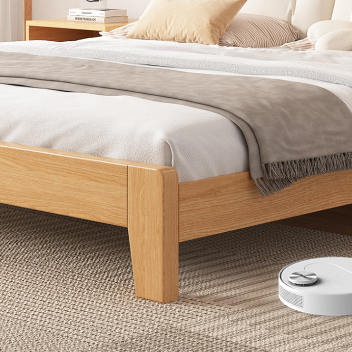 Hedendaags massief hout gestoffeerd hoofdeinde rechthoekig standaardbed, licht niet inbegrepen