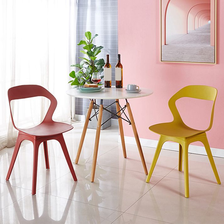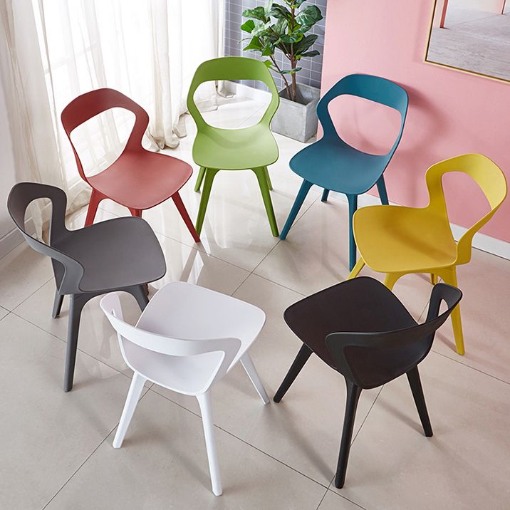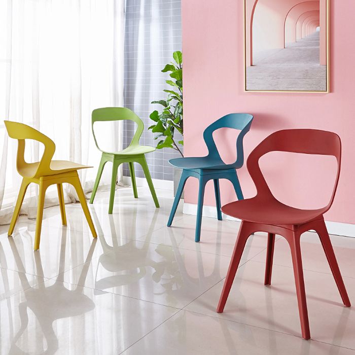 Eigentijdse stijl open rug plastic 4 poten eetstoel stoel voor thuisgebruik